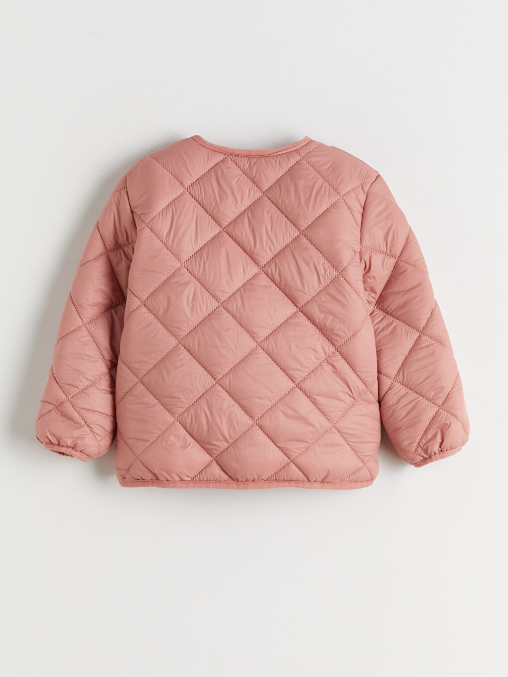 پالتو دخترانه یقه گرد، آستین بلند و لحاف دوزی شده. جلو دکمه دار و دو جیب وصله دار دارد.