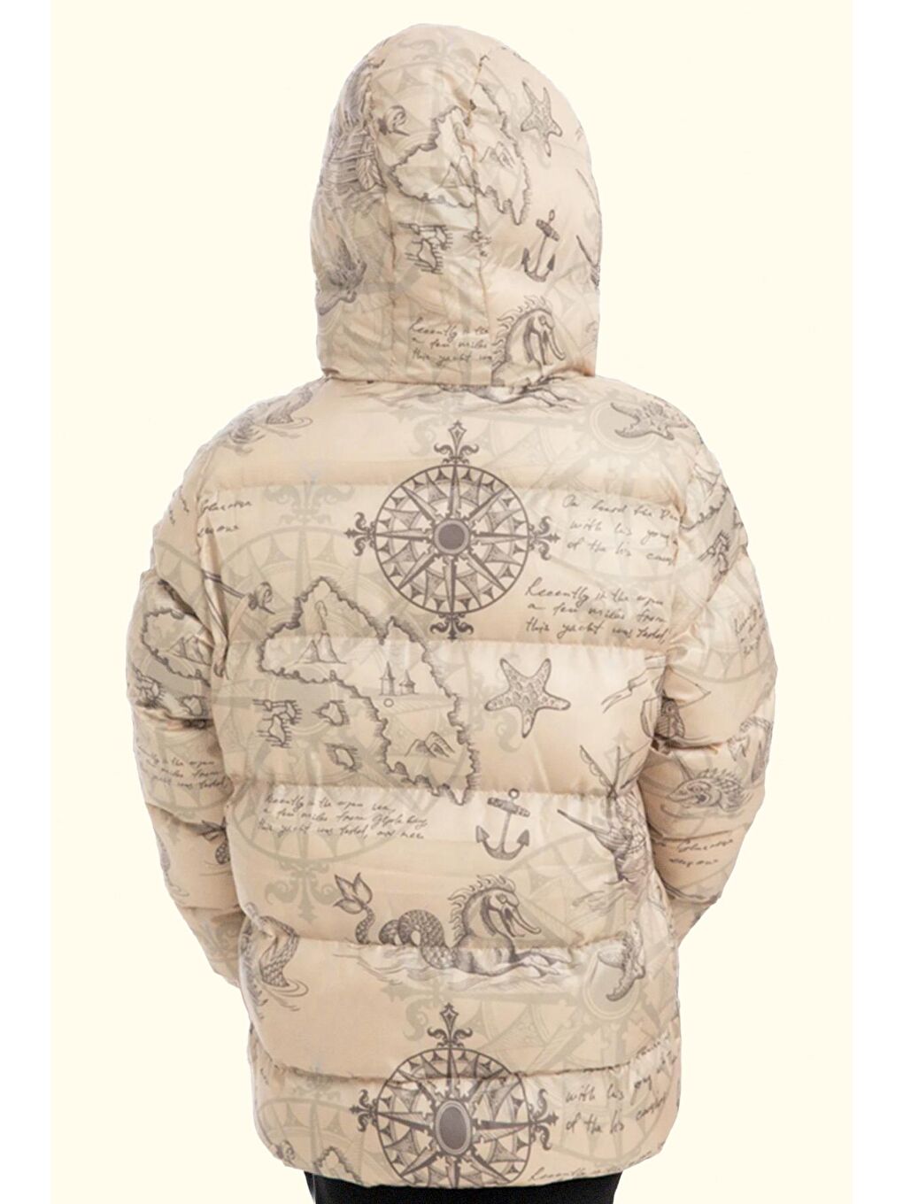 پالتو زمستانی دخترانه پفی طرح قطب نما، ضد آب و باد، کلاه دار، طرح قطب نما