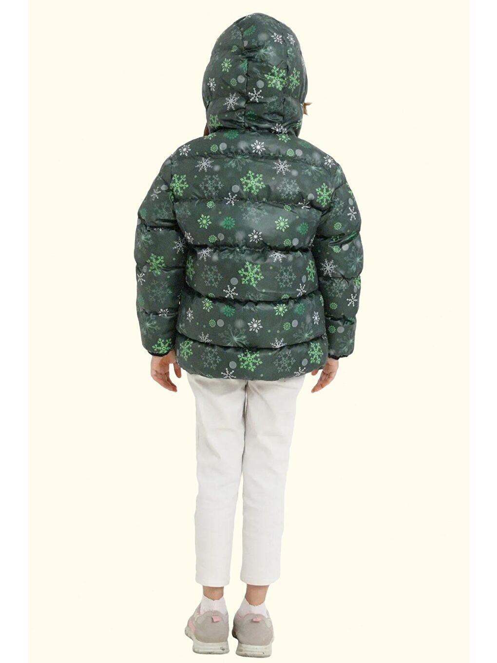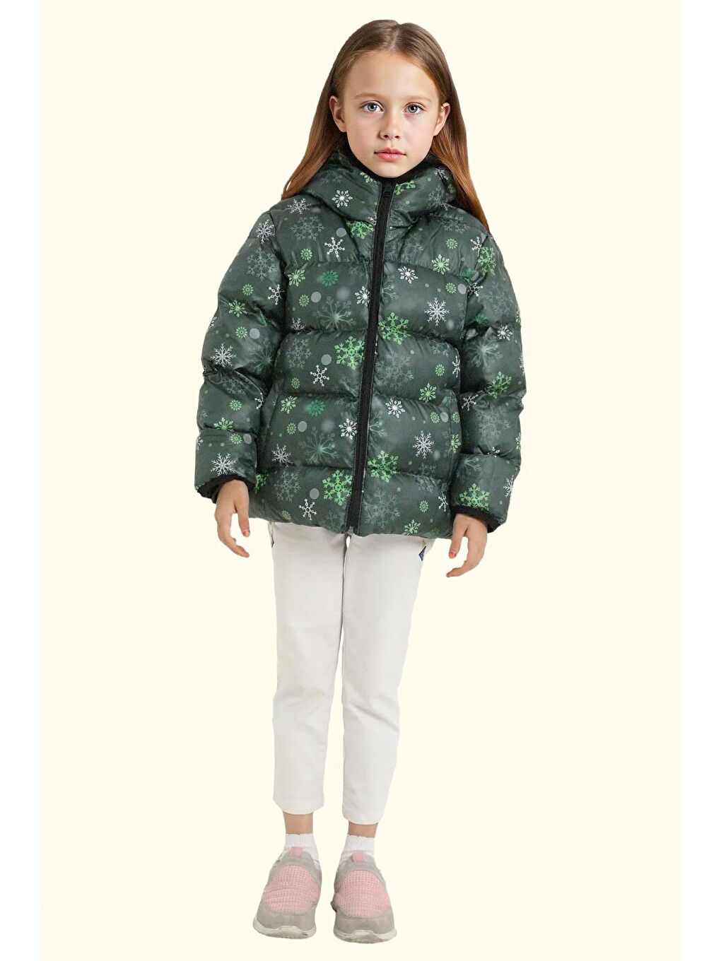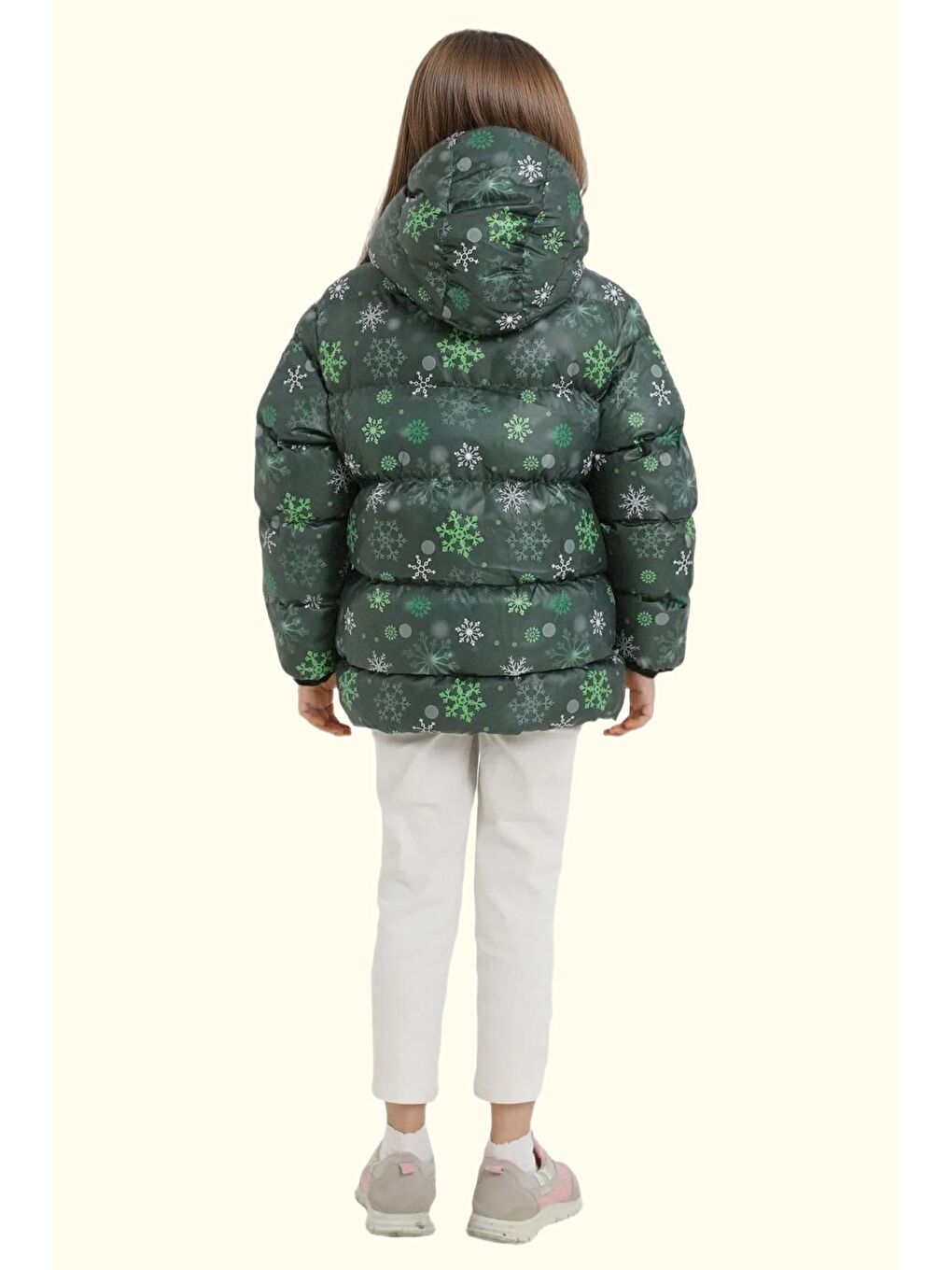 پالتو زمستانی دخترانه سبز طرح قطب نما، پشم گوسفند وجانوران دیگر، ضد آب و باد، کلاه دار، پافر