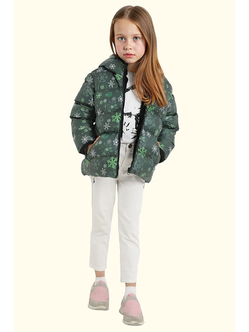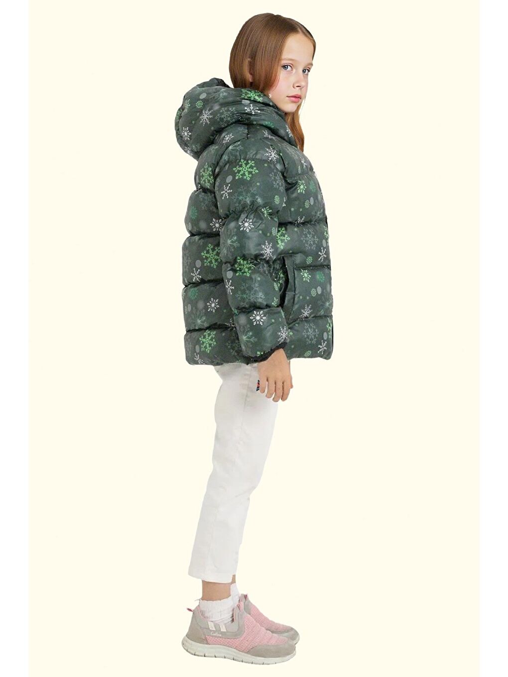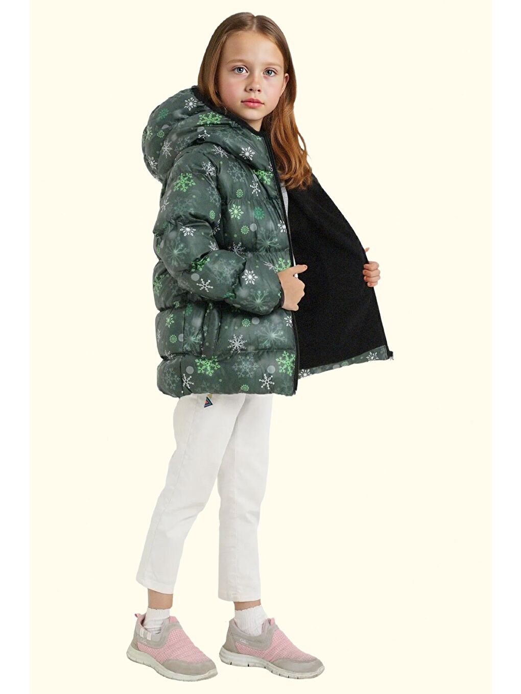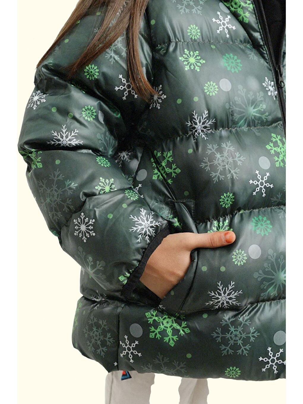 پالتو زمستانی دخترانه سبز طرح قطب نما، پشم گوسفند وجانوران دیگر، ضد آب و باد، کلاه دار، پافر