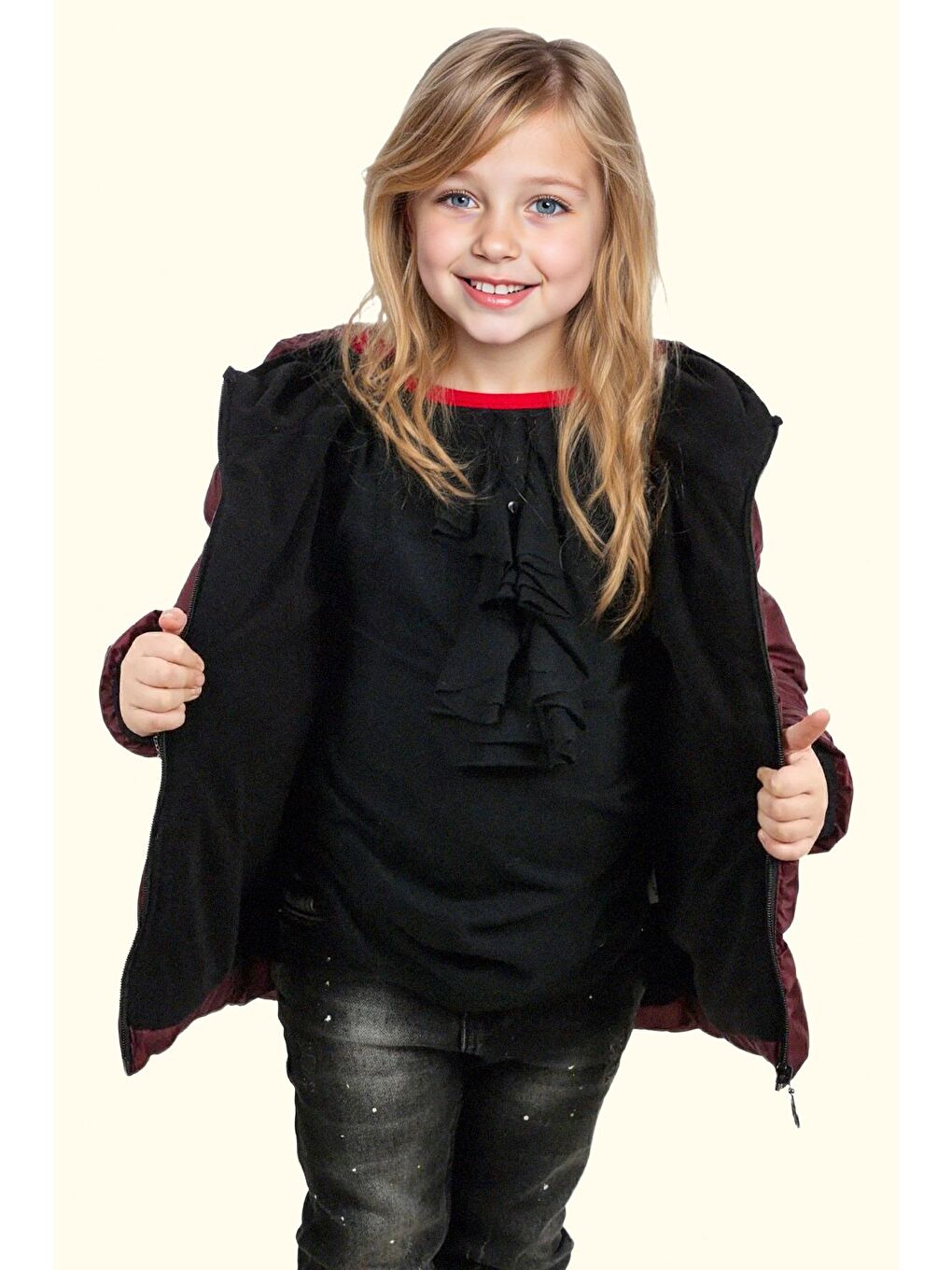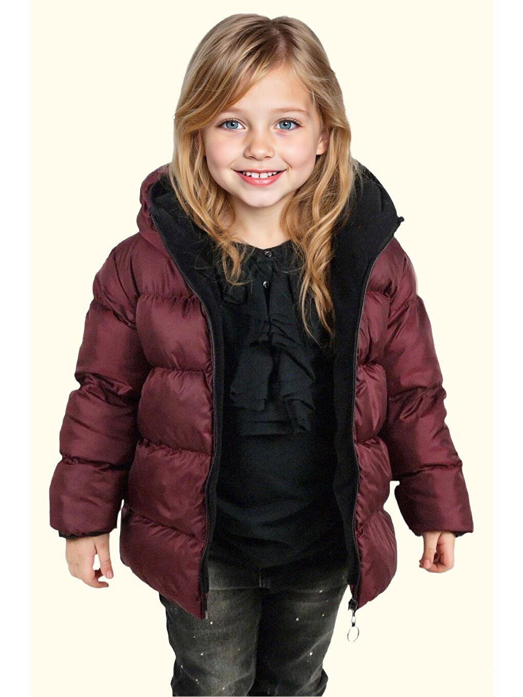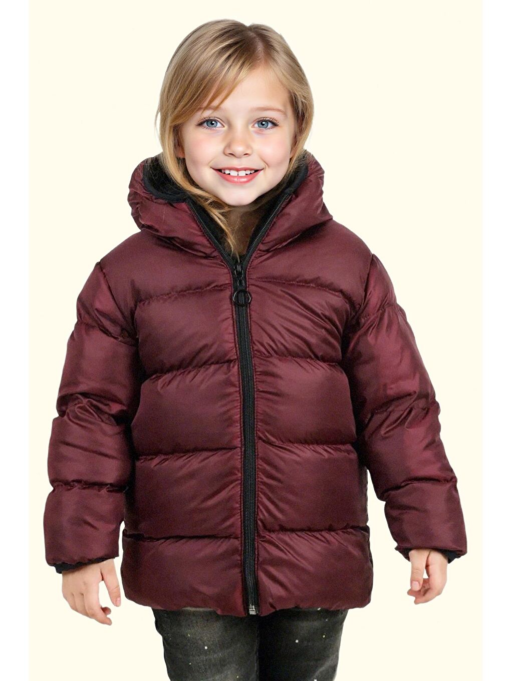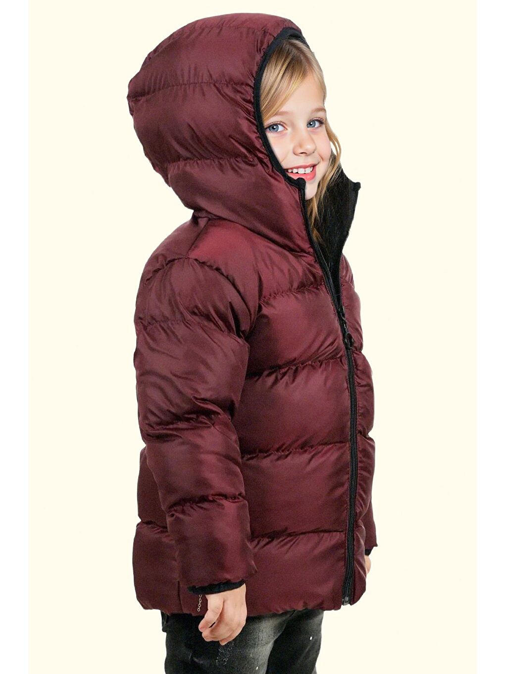 پالتو زمستانی دخترانه زرشکی، خزدار قطبی، ضد آب، ضد باد، پفی