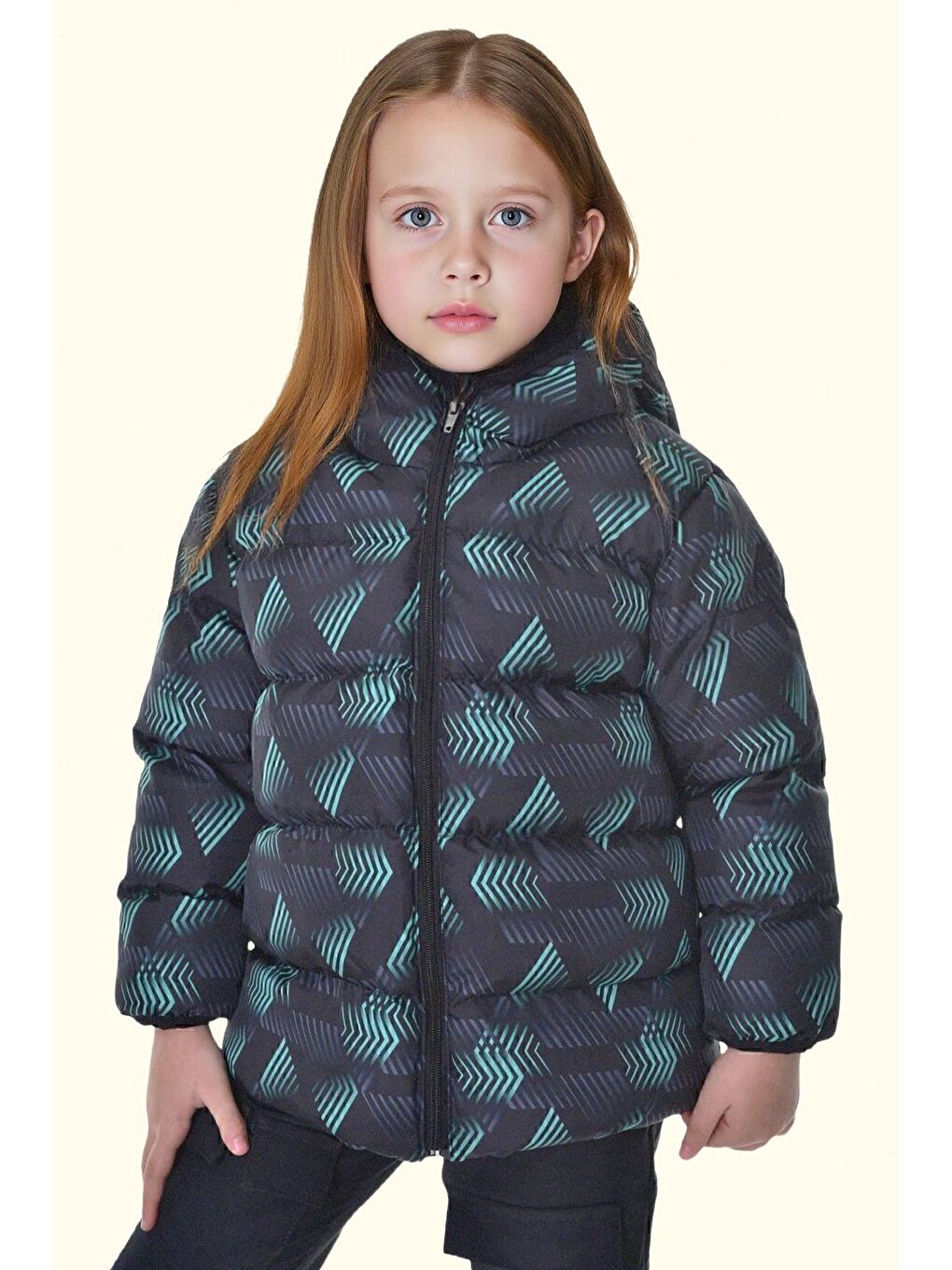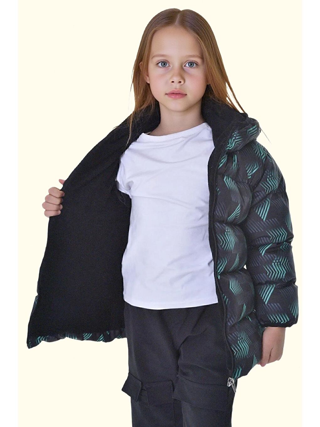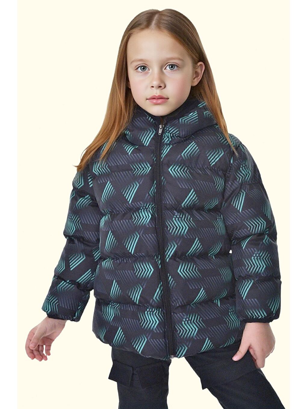 پالتو زمستانی پفی کلاه دار دخترانه مشکی طرح دیجیتال ضد آب و باد