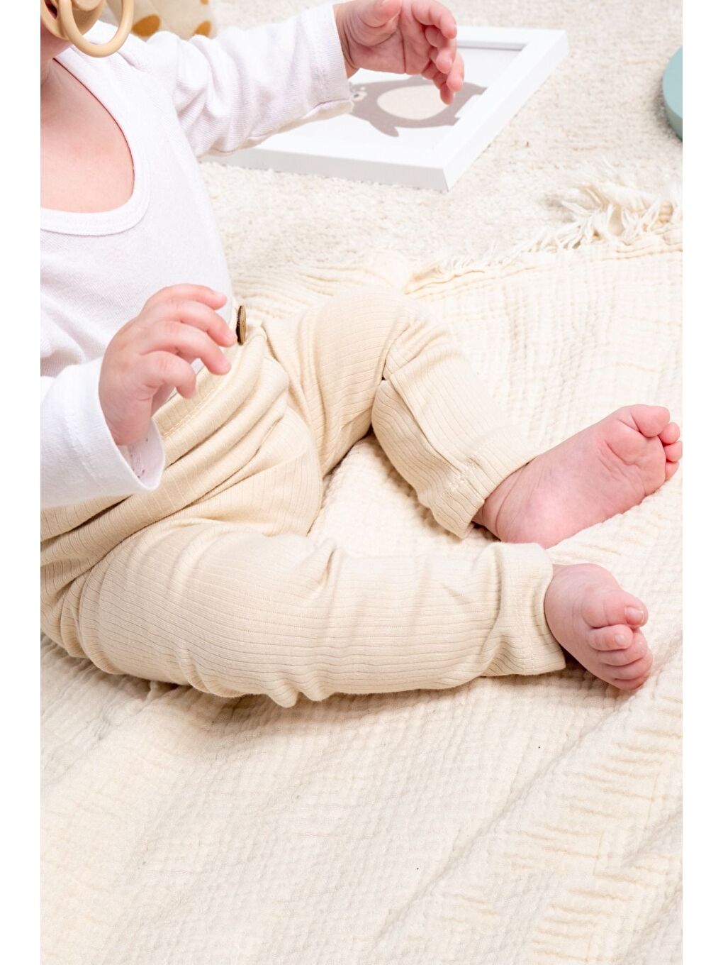 جوراب شلواری بچه گانه جوراب شلواری بچه گانه با طرح دنده پنبه ای ارگانیک بژ