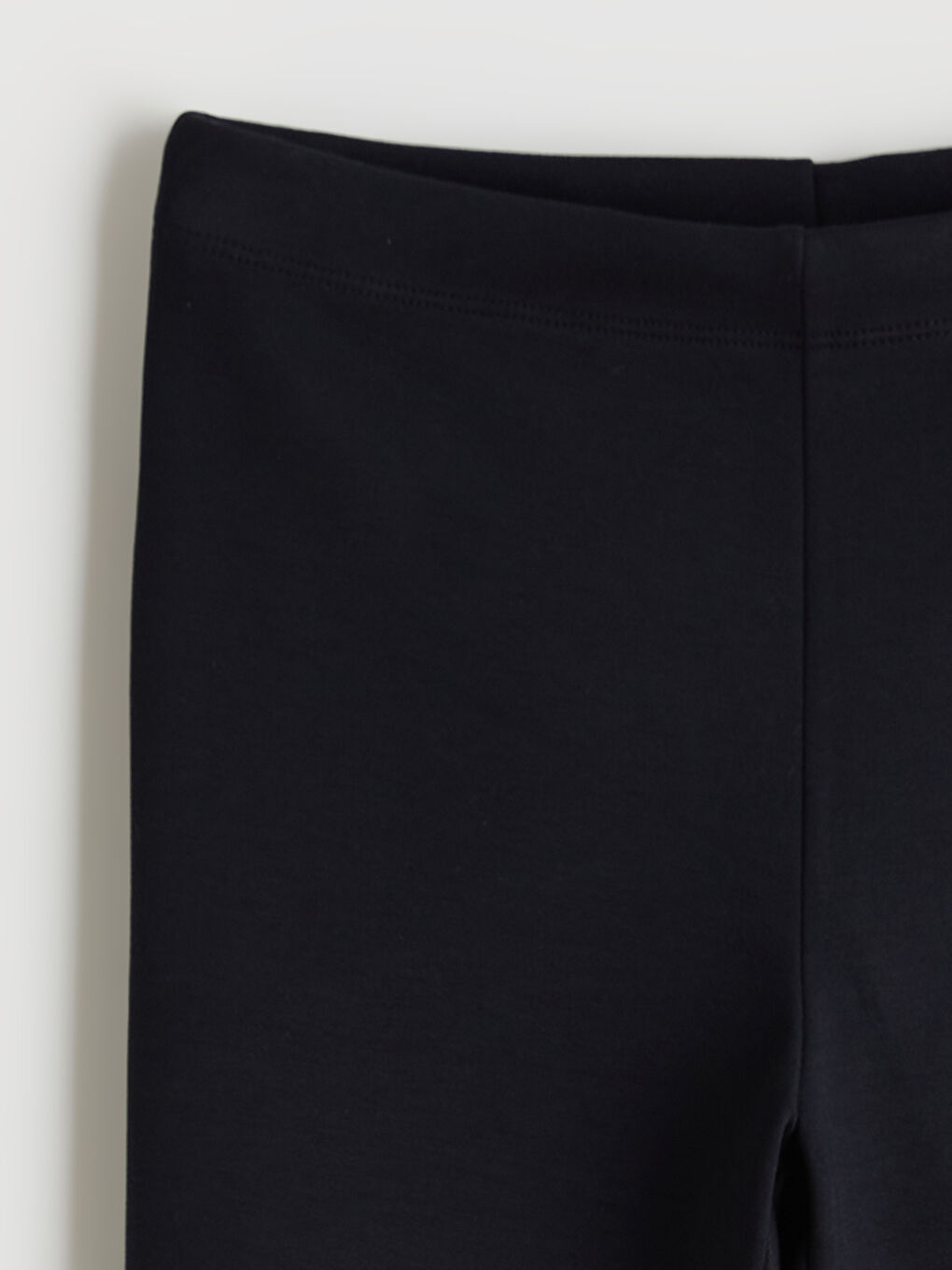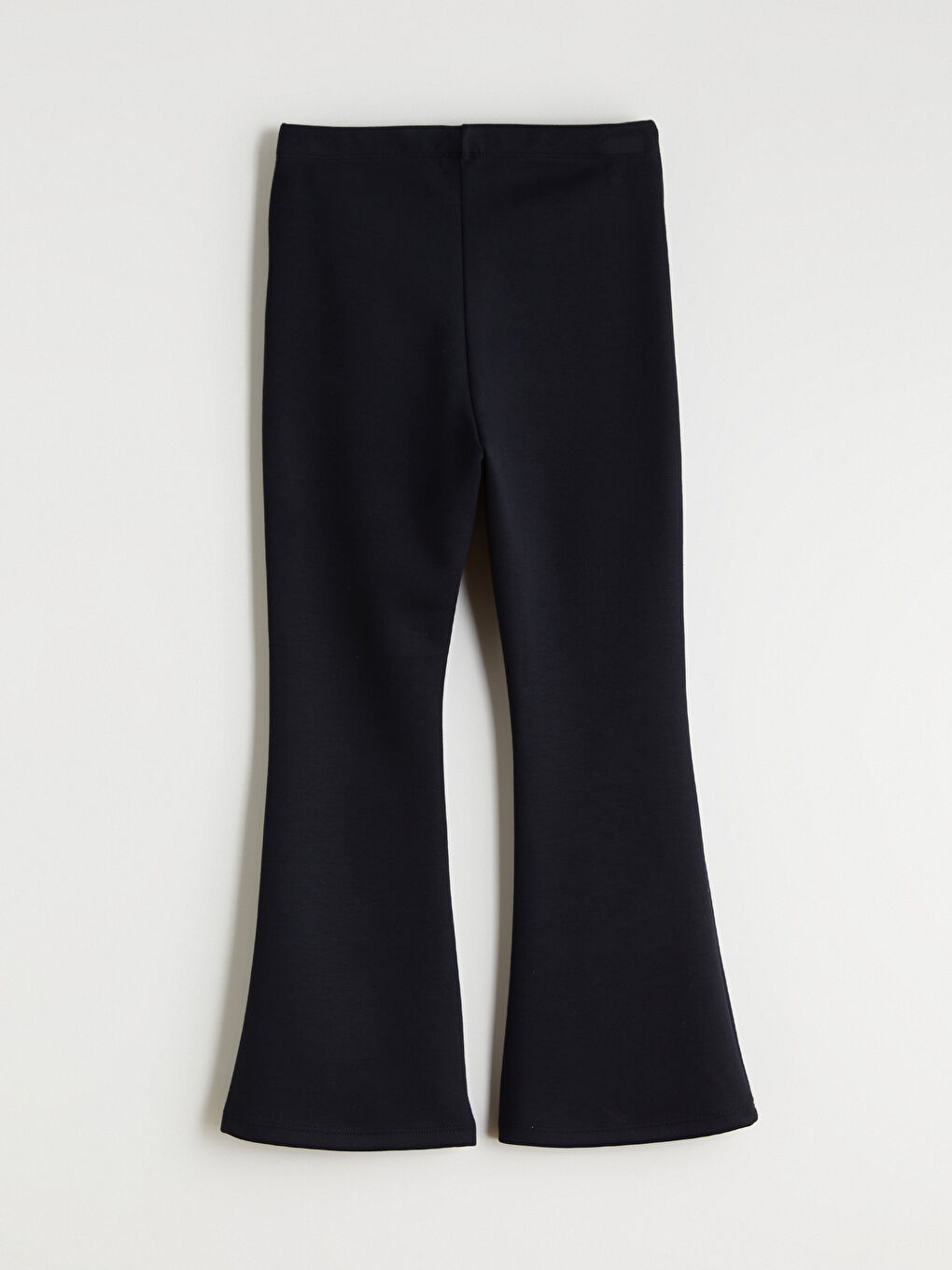 شلوار لگ دخترانه کمر کشی از پارچه اینترلاک ساخته شده است. این شلوار دارای طرح ساده و بدون طرح و لبه پایینی زنگوله‌ای است.