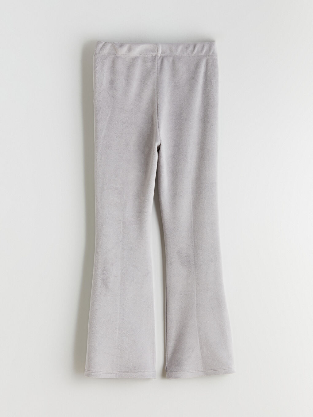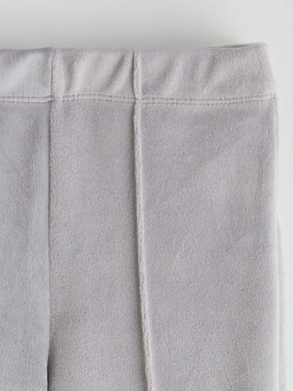 شلوار استرچ دخترانه مخمل کمر کشی خاکستری زنگوله‌ای
