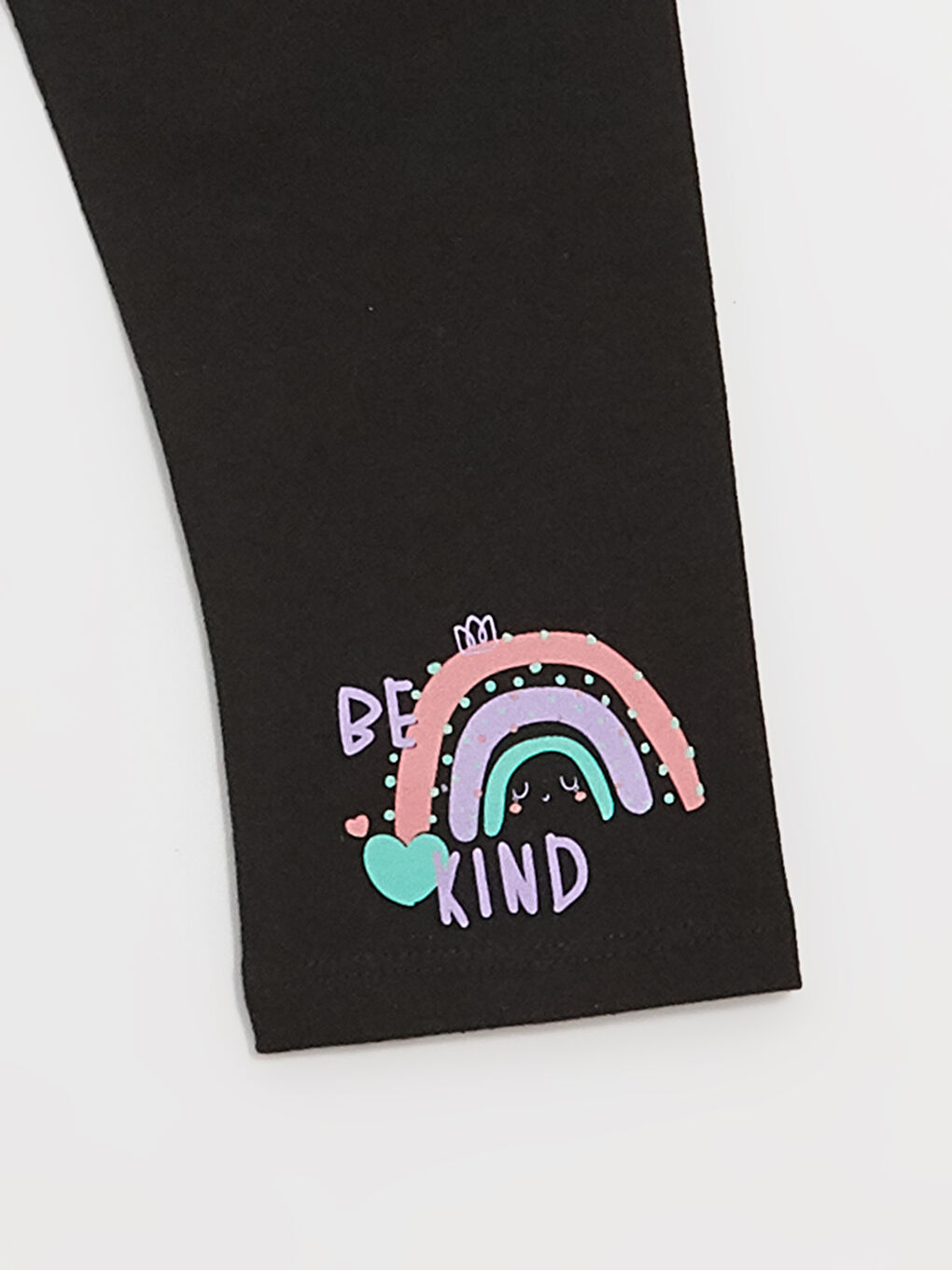 شلوار استرچ دخترانه بلند طرح‌دار مشکی