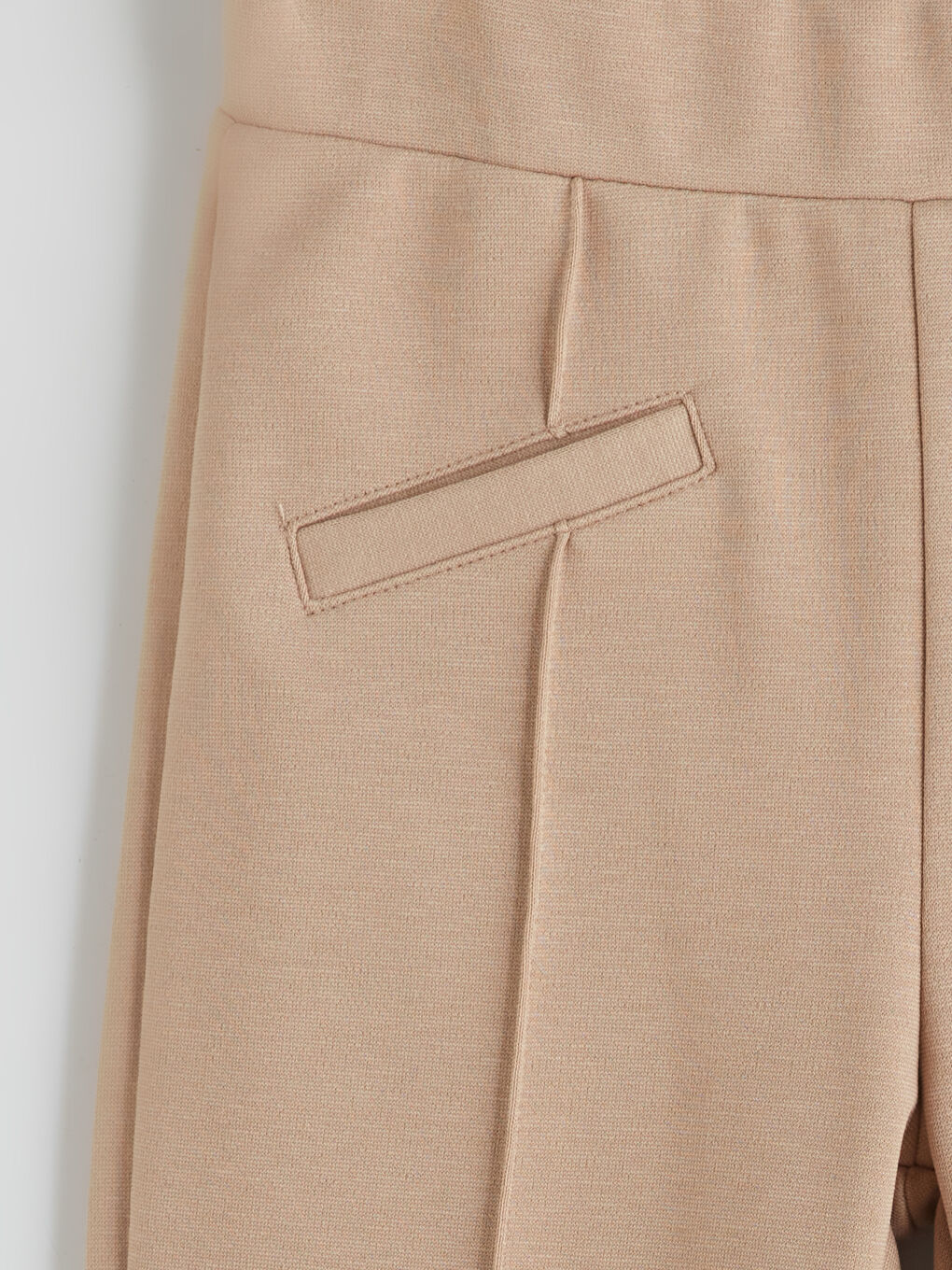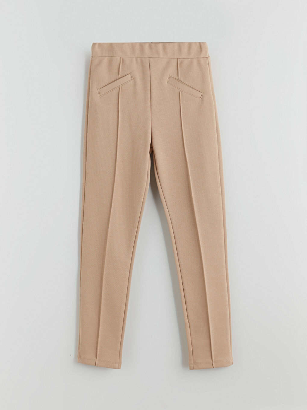 شلوار ساق دخترانه ساخته شده از پارچه پنبه ای بالا. کمر الاستیک، جزئیات جیب پشت و لبه های درز.