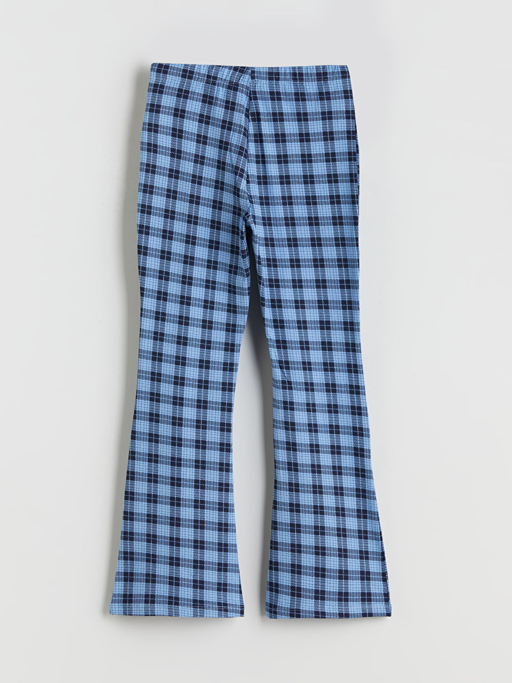 شلوار ساق دخترانه چهارخانه کمر الاستیک آنتراسیت