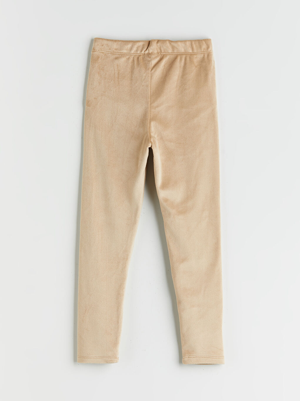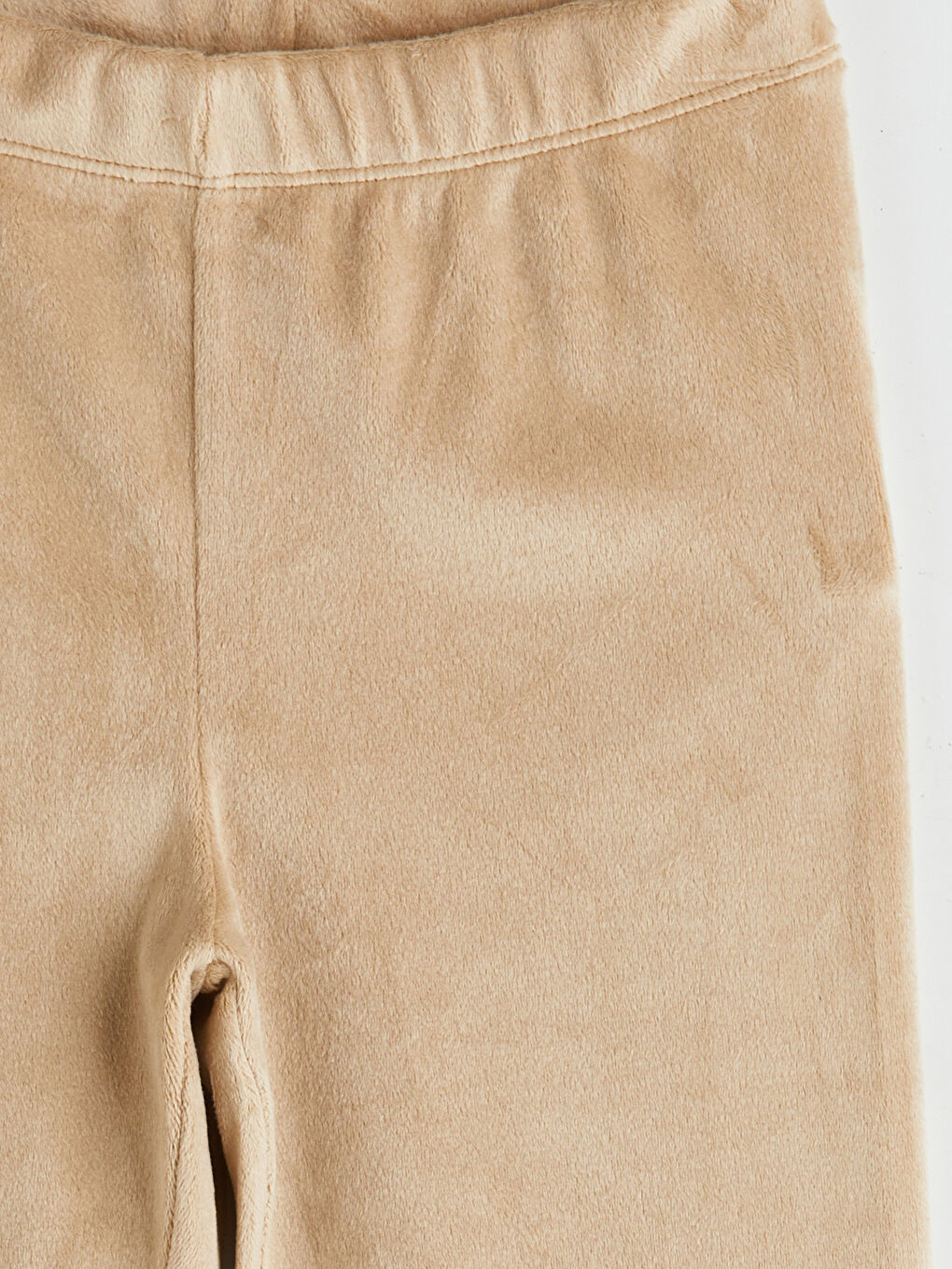 شلوار ساق دخترانه مخمل کمر الاستیک بژ