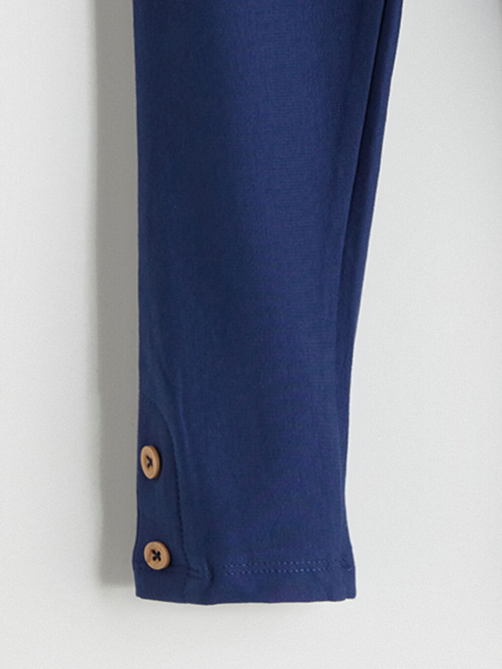 شلوار ساق بلند دخترانه با دکمه آبی سرمه ای