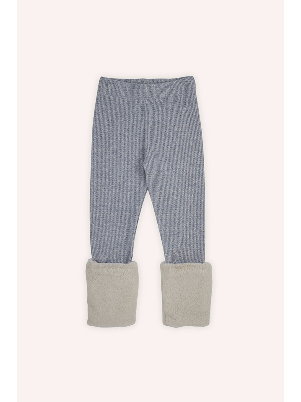 شلوار ساق بافتنی دخترانه آبی با جزئیات خز