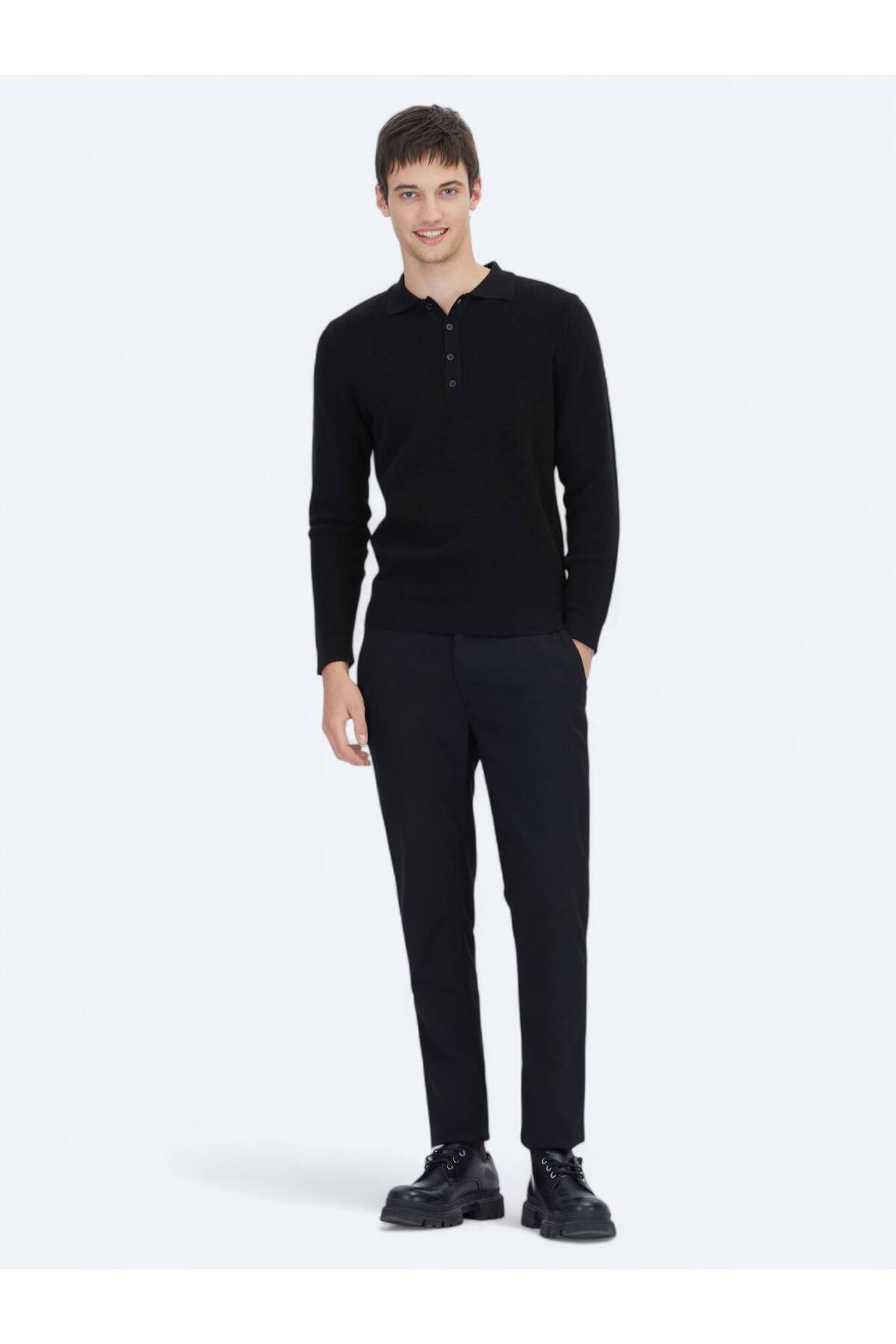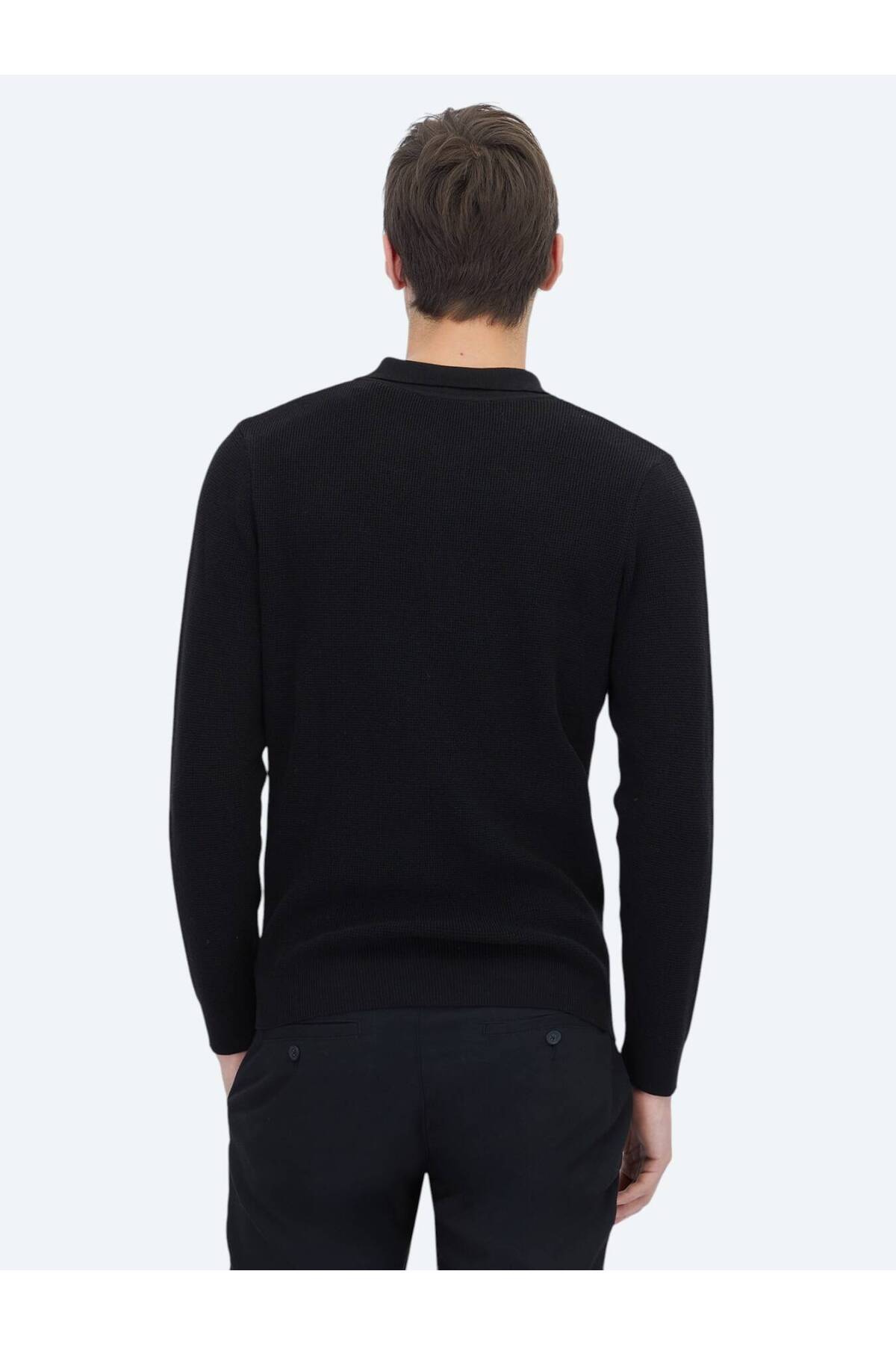 کیپ ژاکت بافتنی نخی ساده یقه پولو مشکی