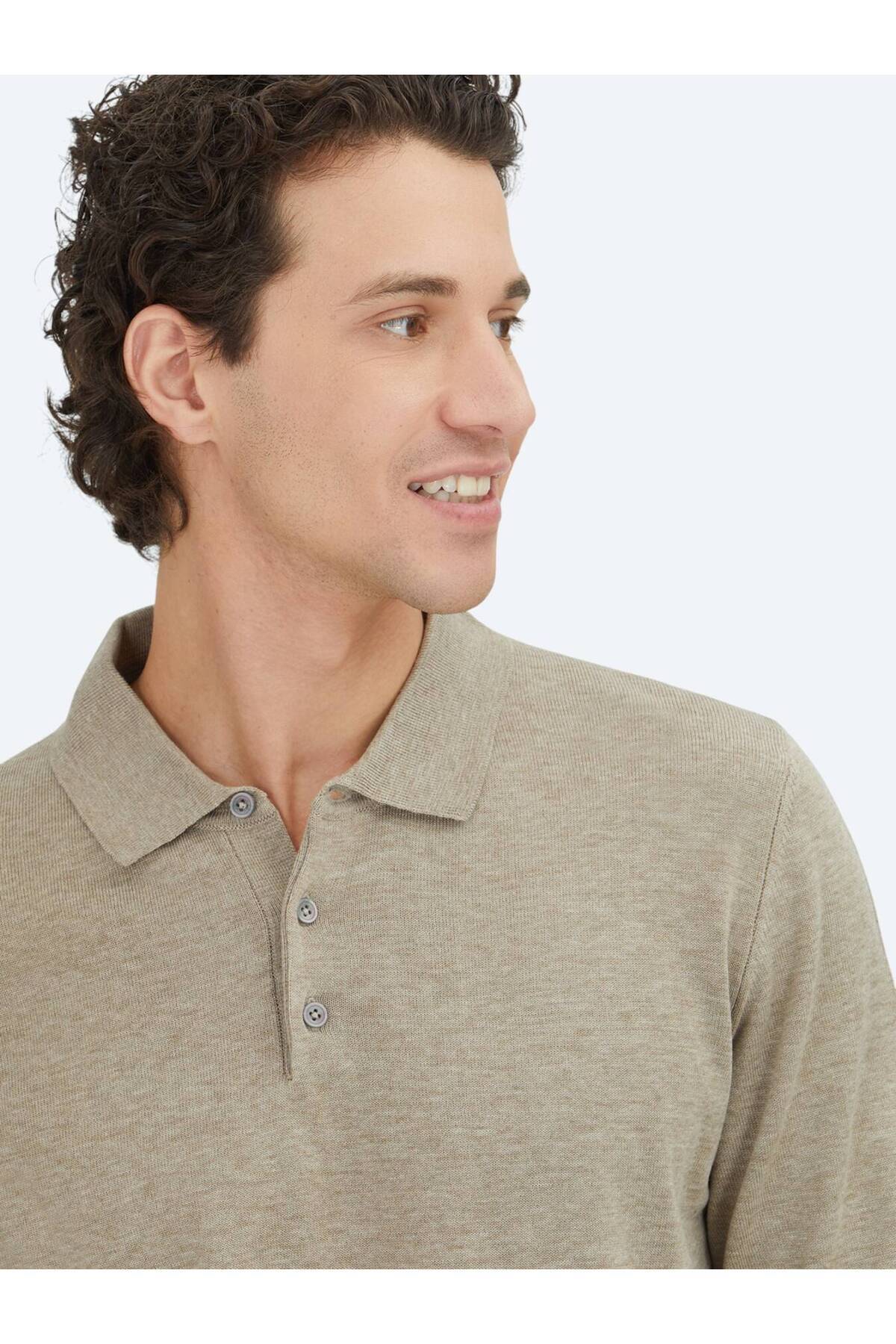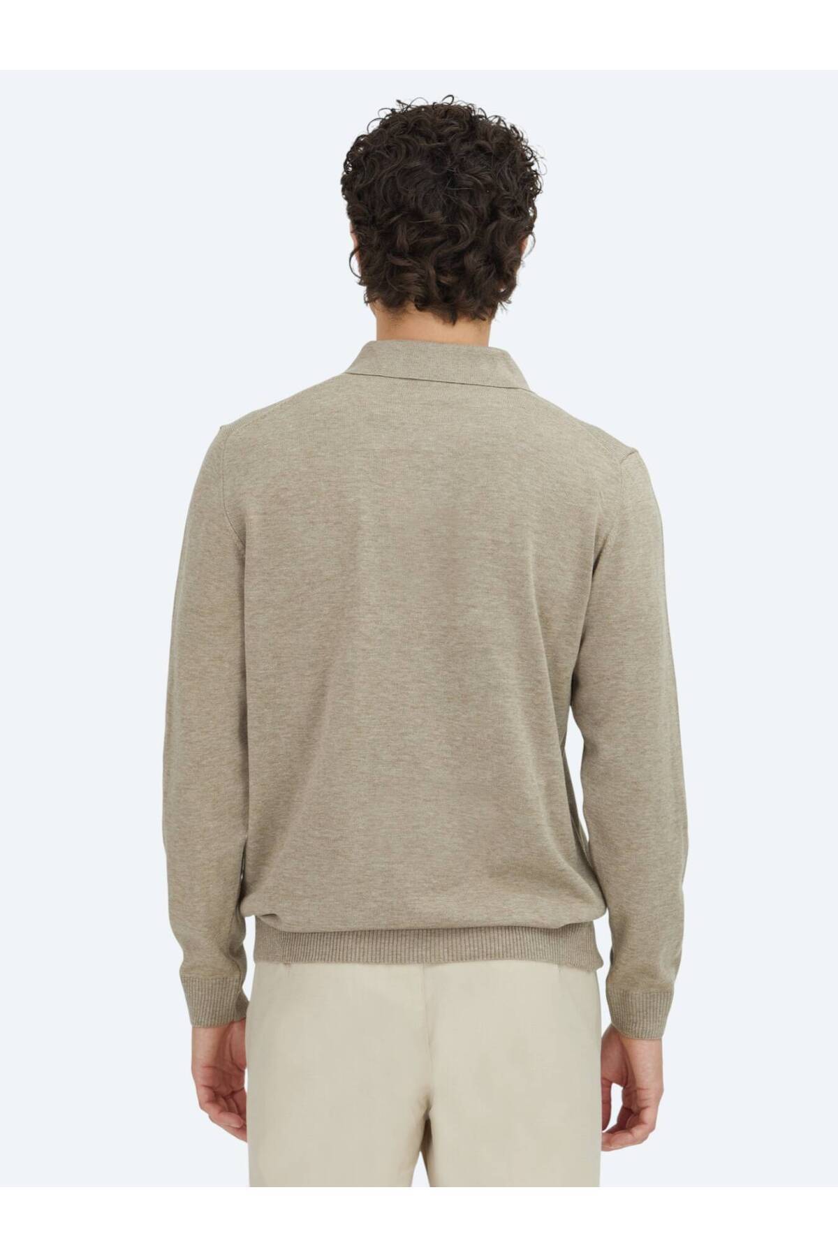 کیپ ژاکت بافتنی ساده یقه پولو بژ