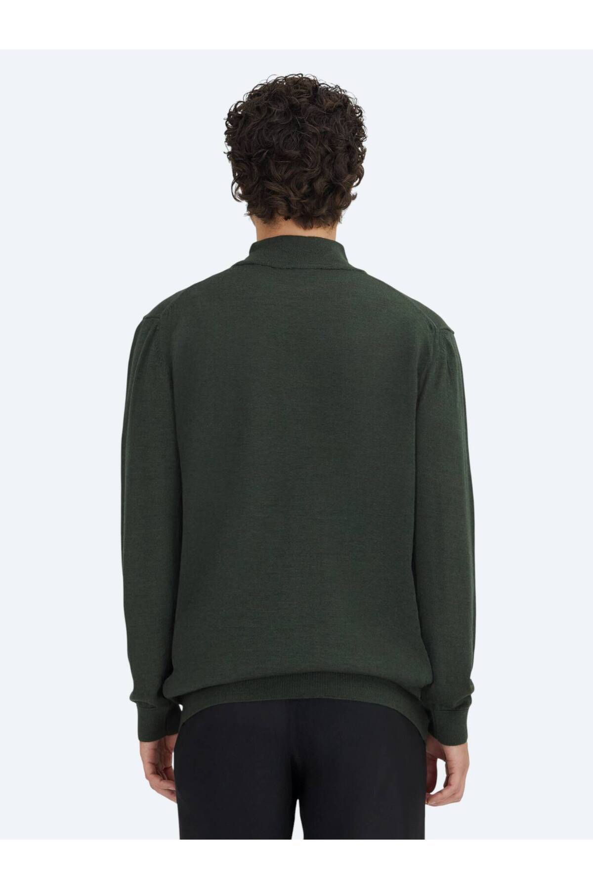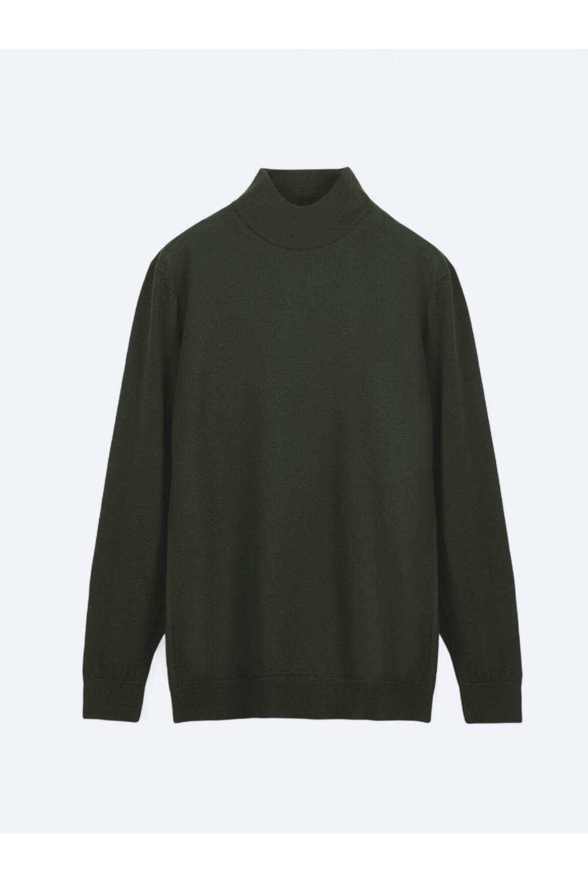 کیپ ژاکت پشمی ساده بافتنی سبز نیمه یقه اسکی