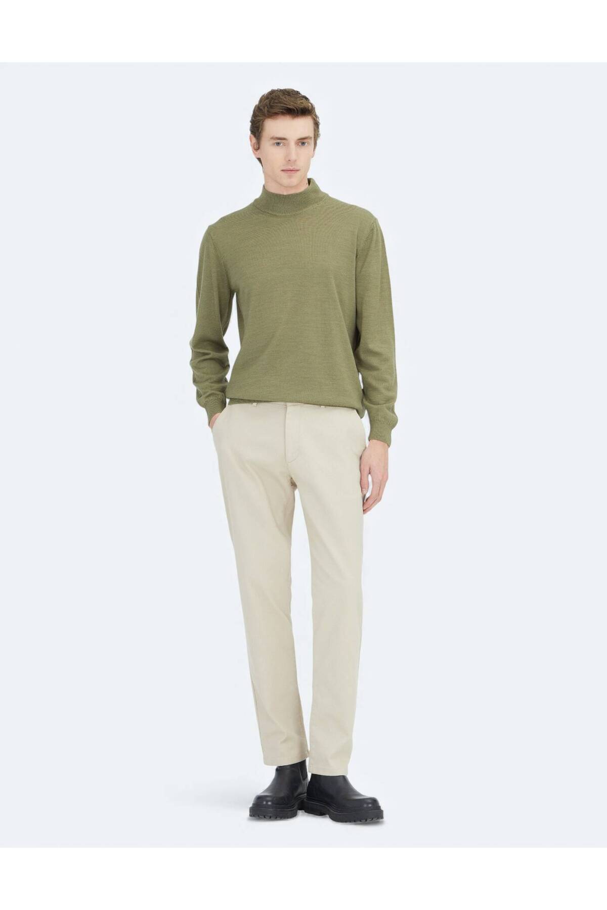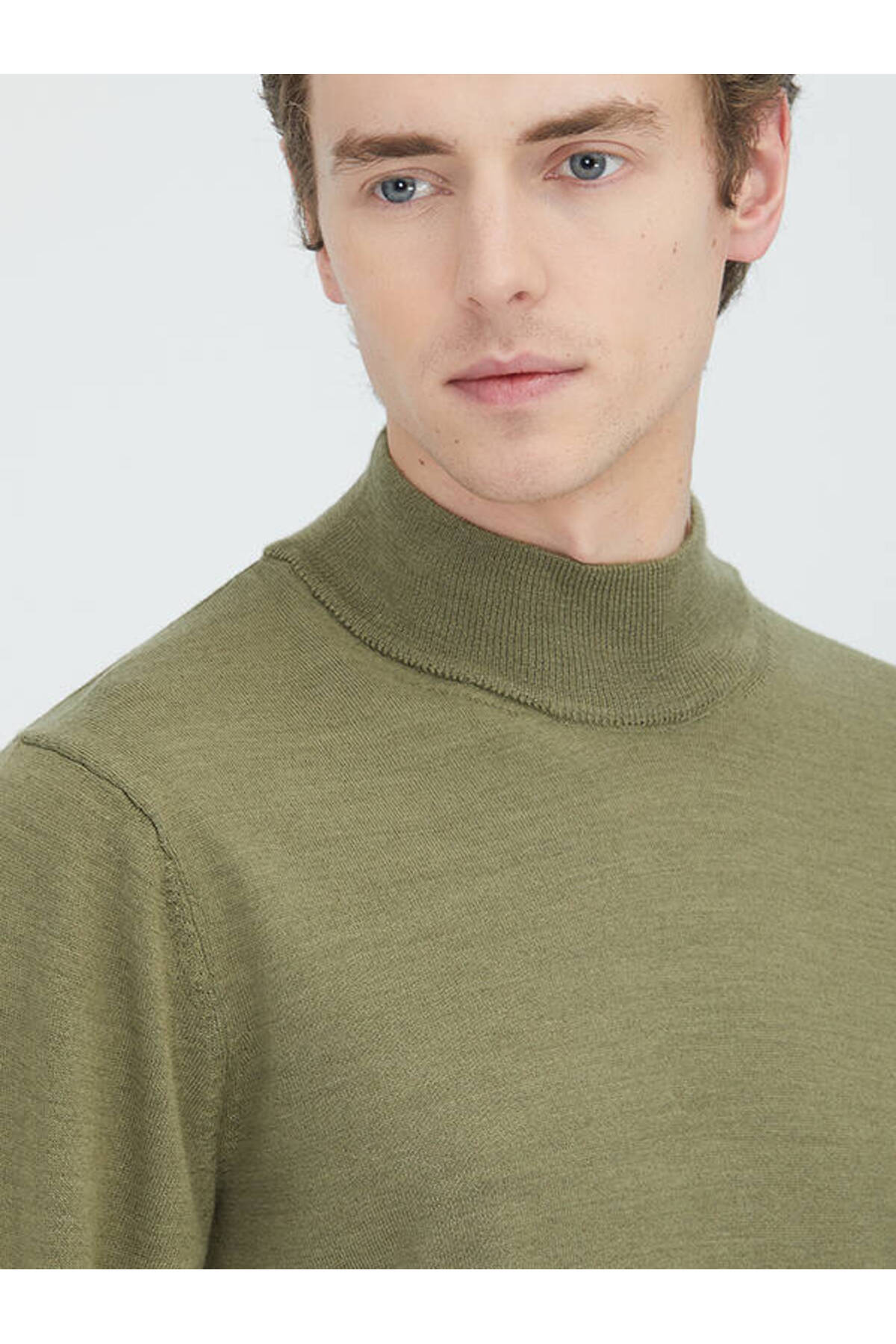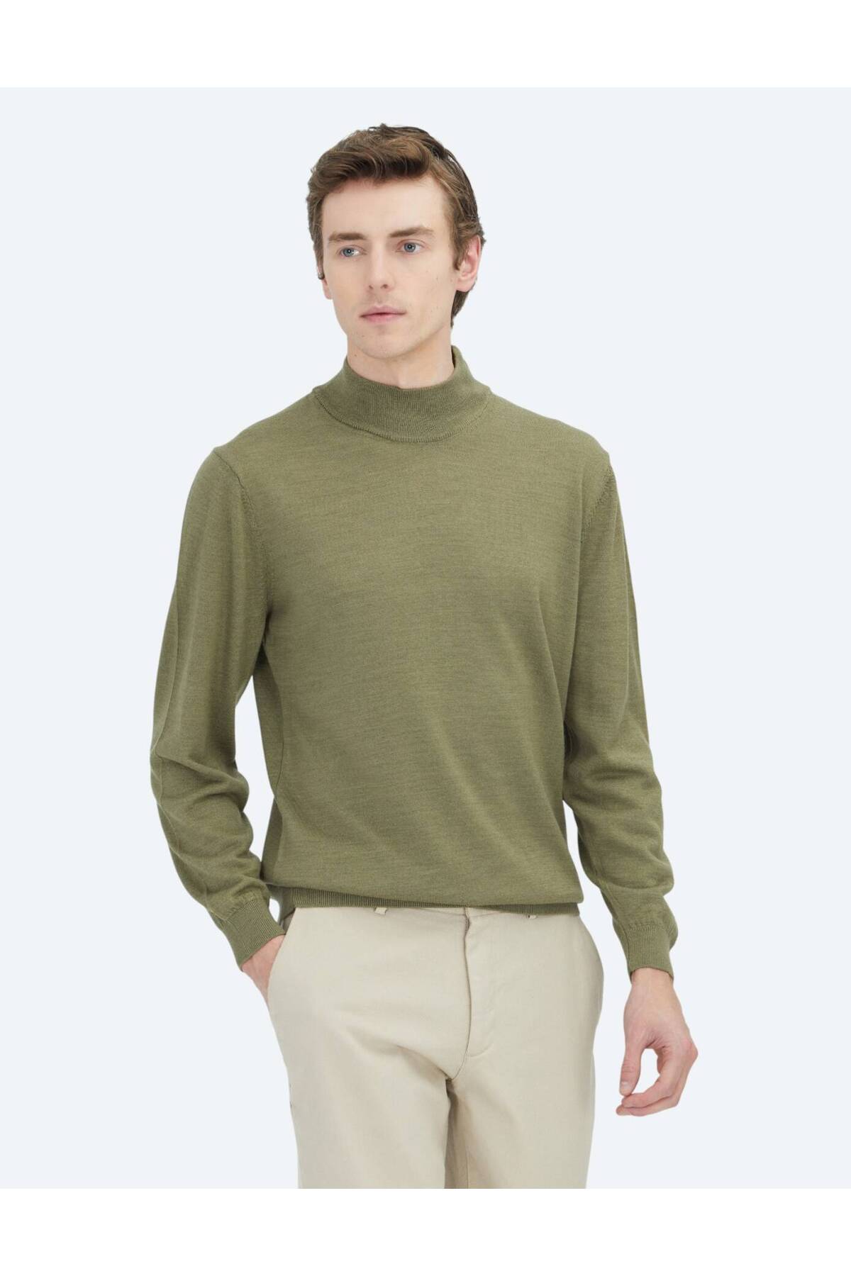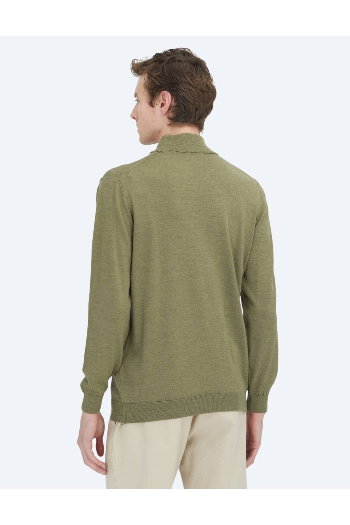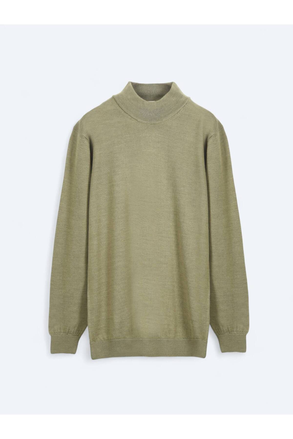 کیپ ژاکت پشمی ساده بافتنی یقه اسکی سبز روشن