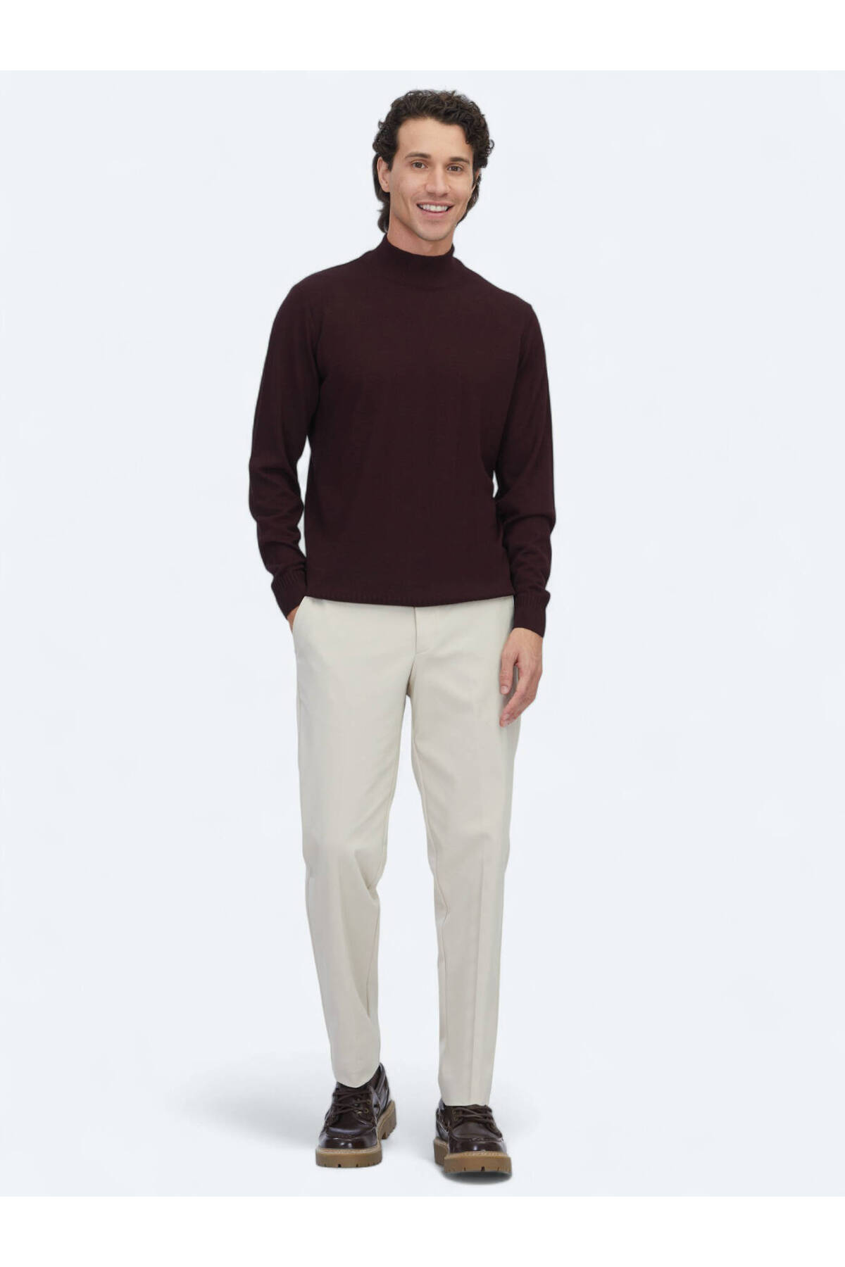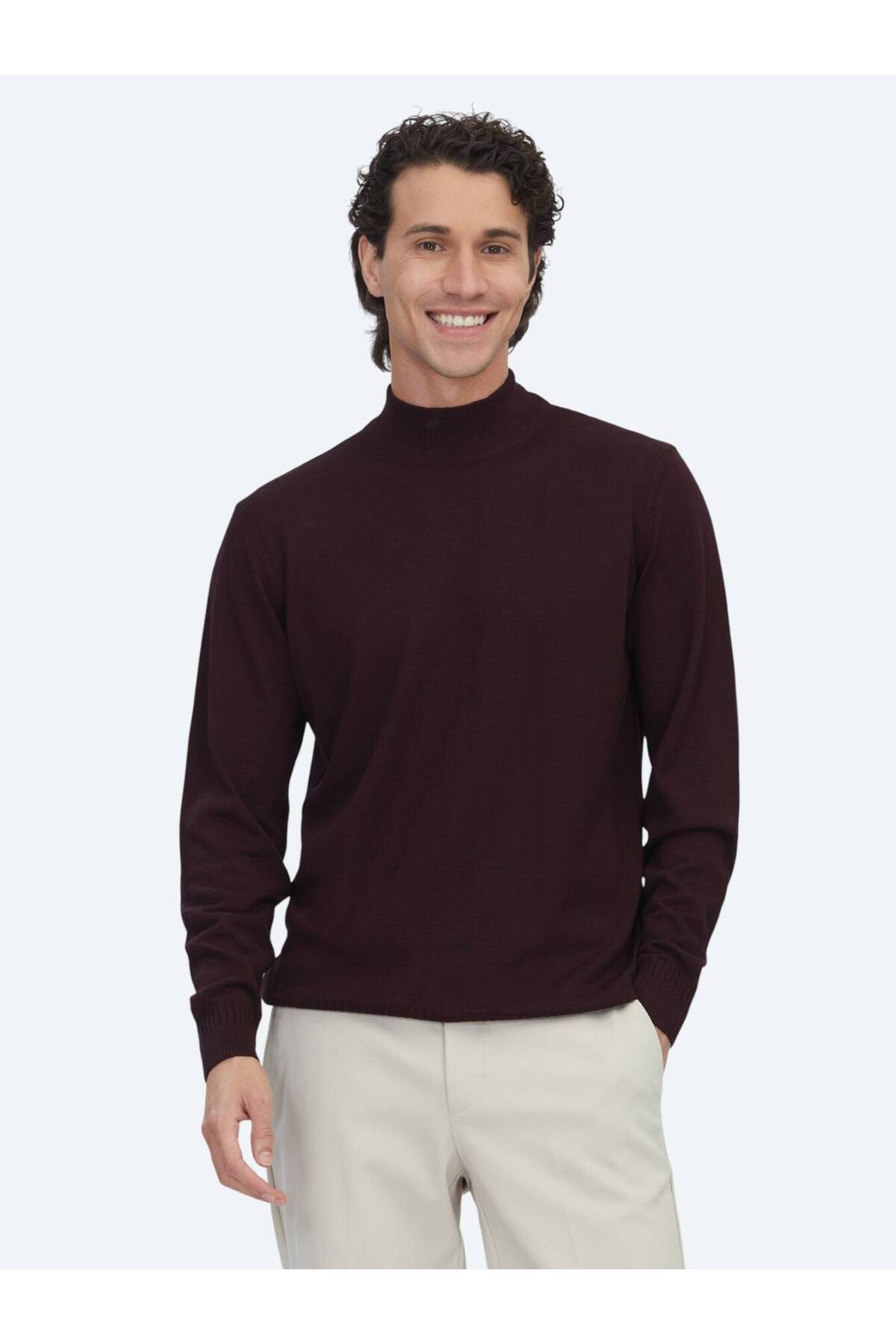 کیپ ژاکت بافتنی پشمی ژاکارد یقه اسکی بورگاندی