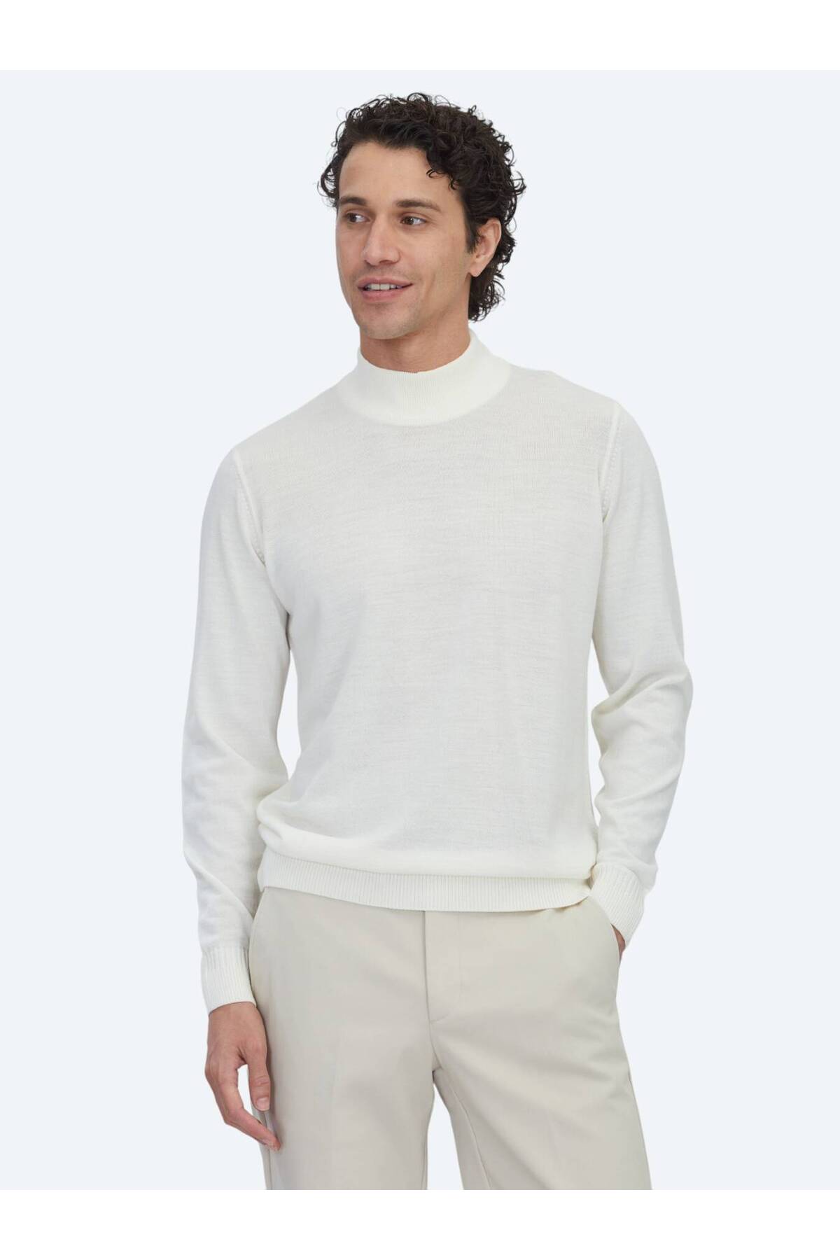 کیپ ژاکت بافتنی پشمی ژاکارد یقه اسکی سفید مایل به کرم.