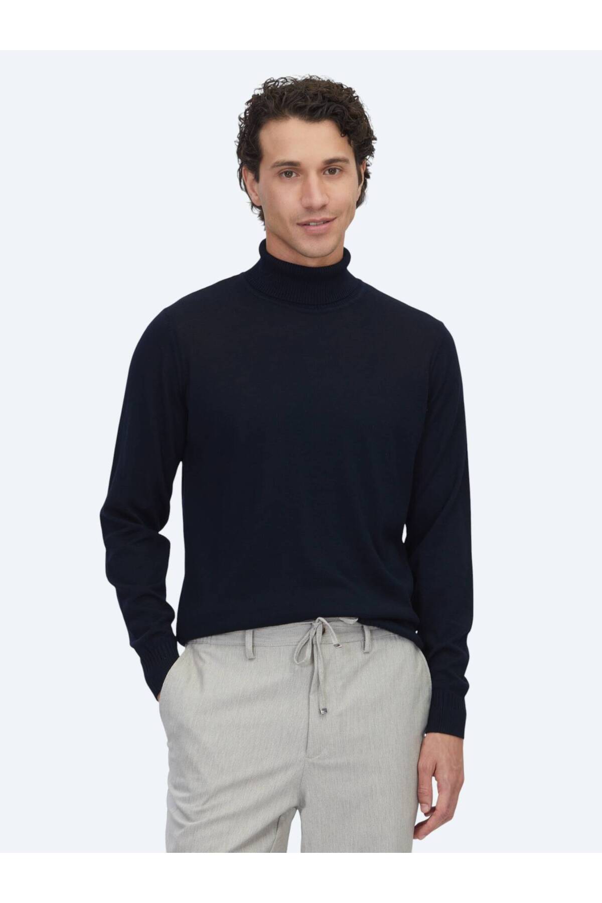 کیپ ژاکت بافتنی پشمی ژاکارد یقه اسکی سرمهای