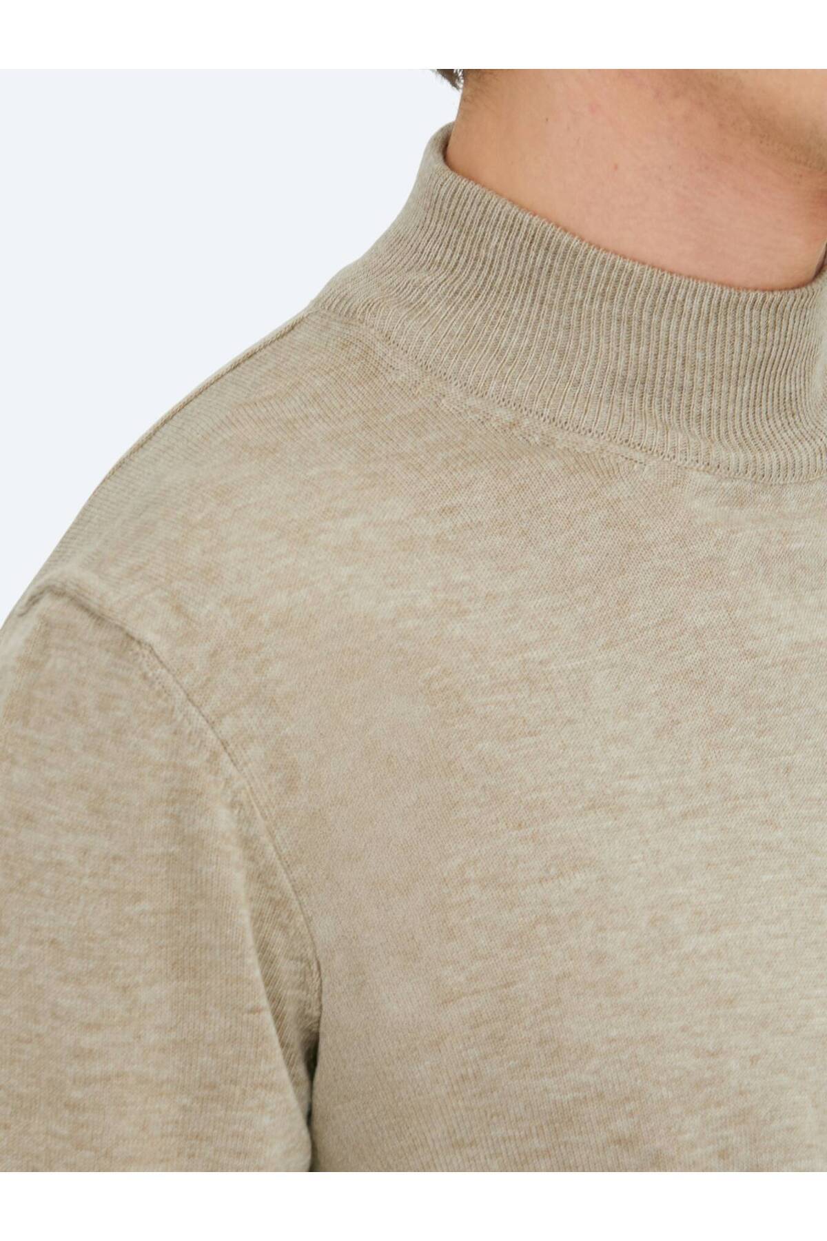 کیپ ژاکت بافتنی ساده یقه اسکی بژ
