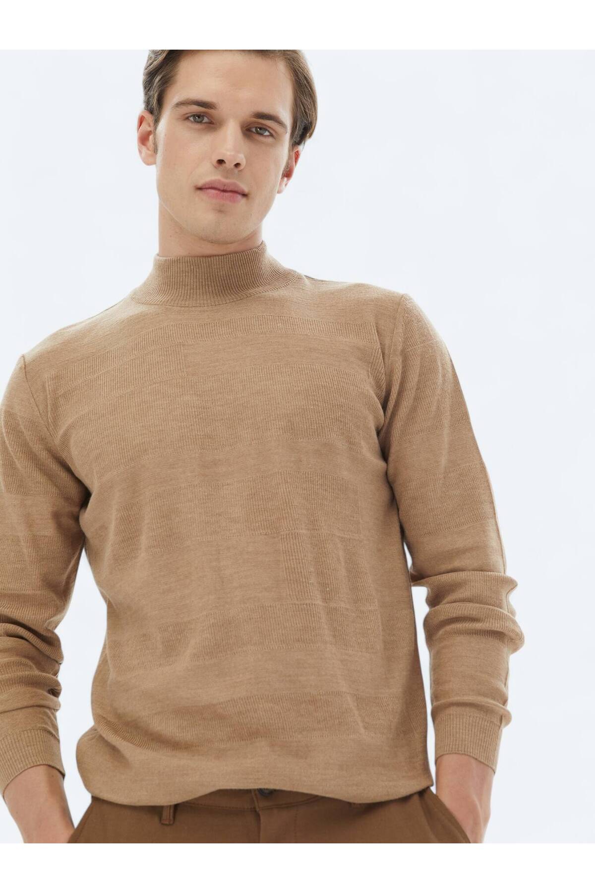 کیپ ژاکت بافتنی پشمی نیم یقه اسکی طرح ژاکارد از جنس مو شتر