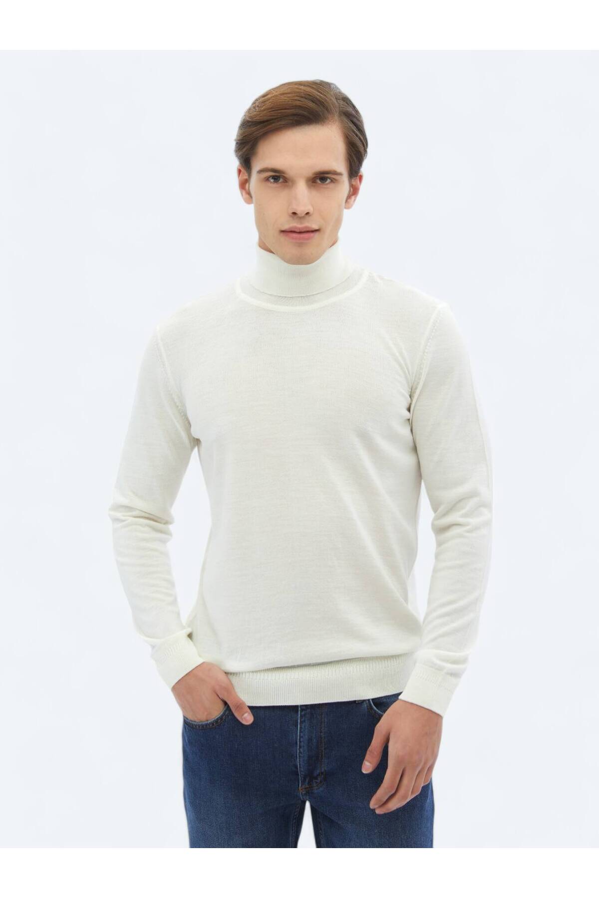 کیپ پلیور پشمی ترکیبی ساده و یقه اسکی تمام سفید.