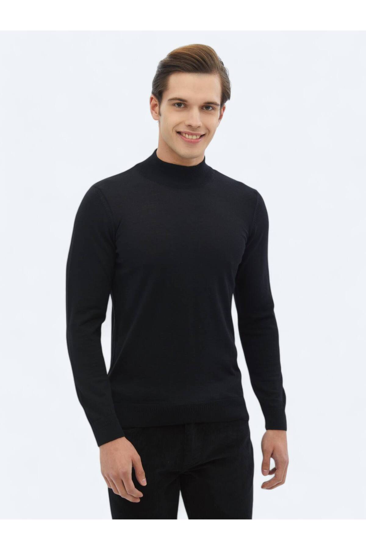کیپ ژاکت پشمی بافتنی ساده مشکی یقه اسکی