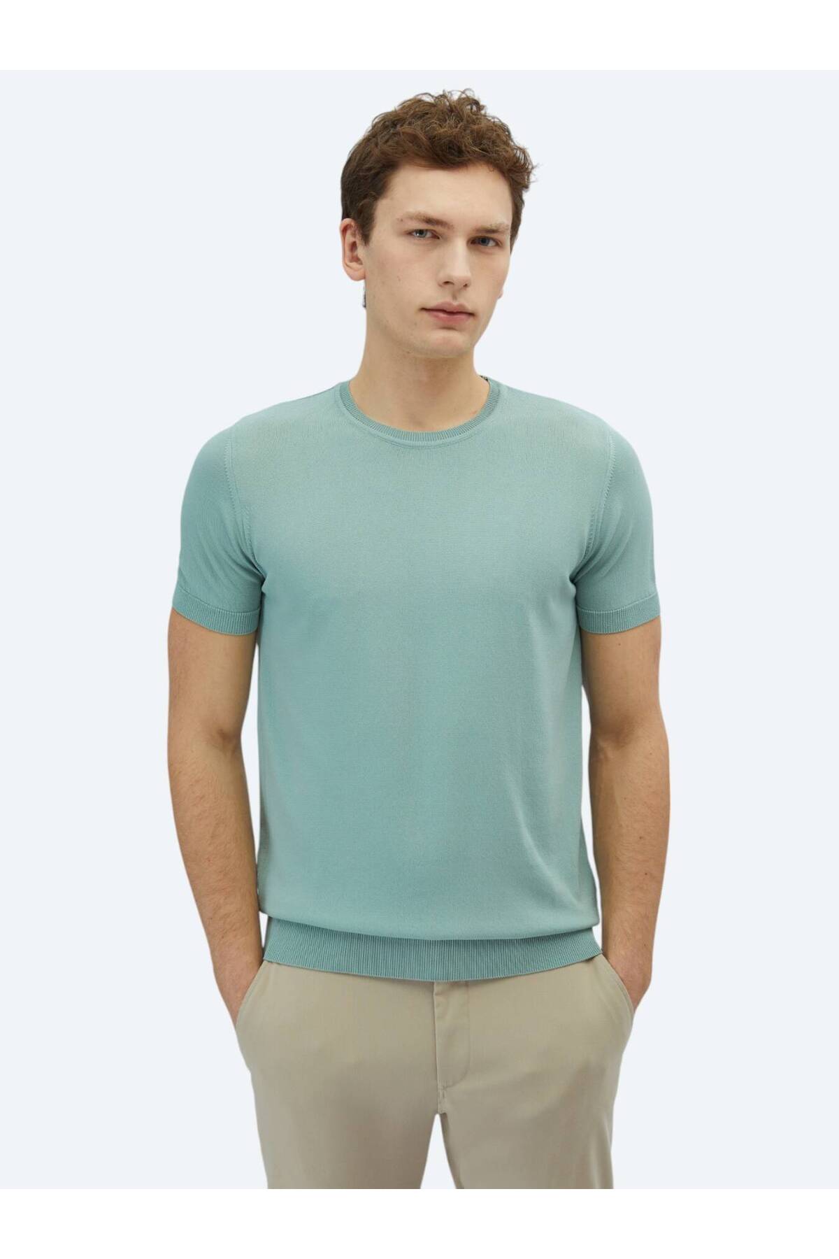 کیپ ژاکت بافتنی ساده یقه گرد سبز آبی