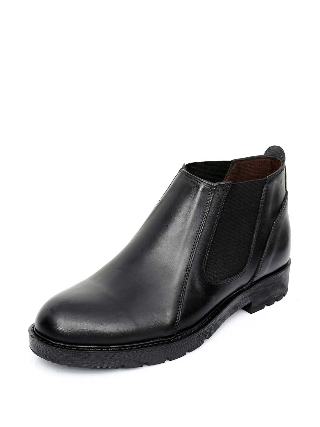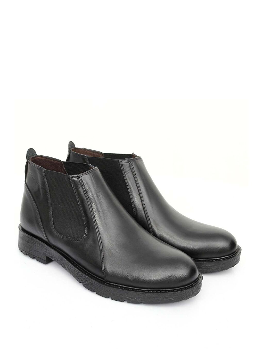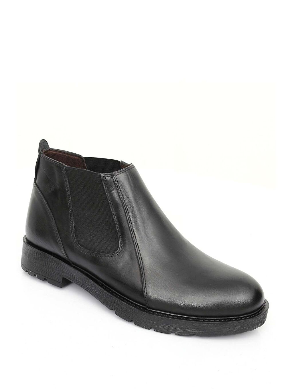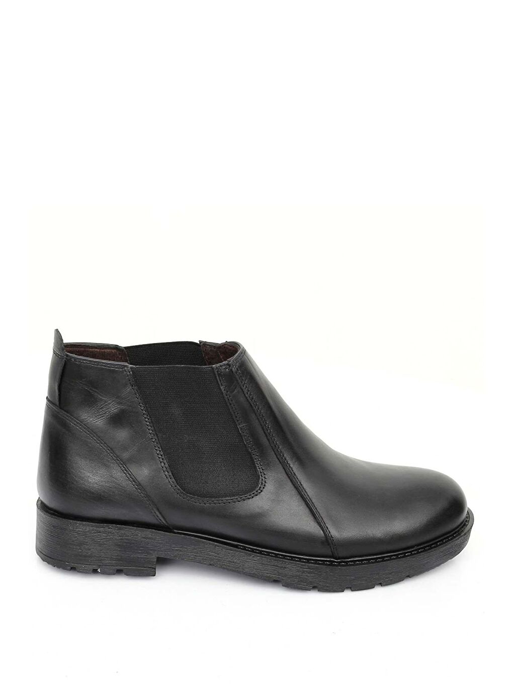 چکمه مردانه کشسان، چرم اصل مشکی، پنجه گرد، زیره لاستیکی، مناسب برای استفاده روزمره، کد ۰۱۲۰۶