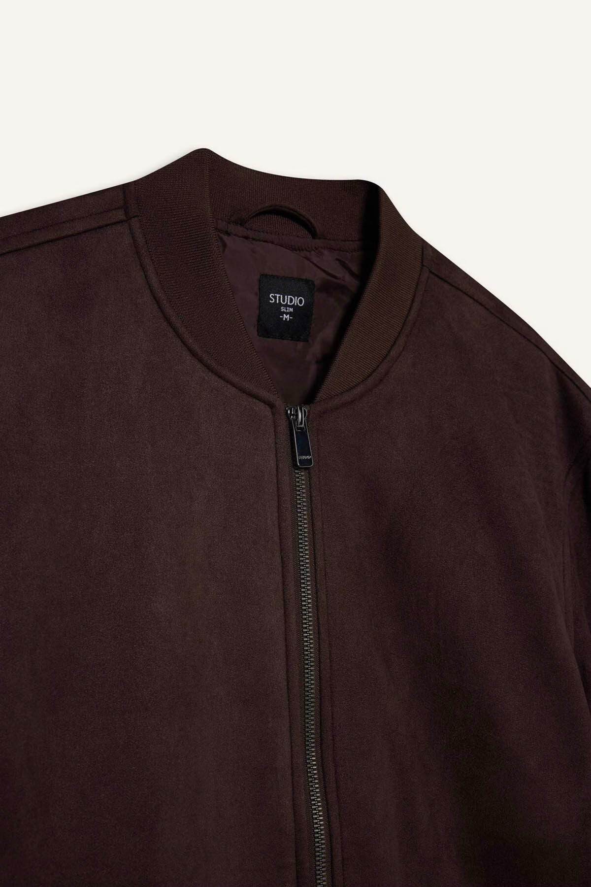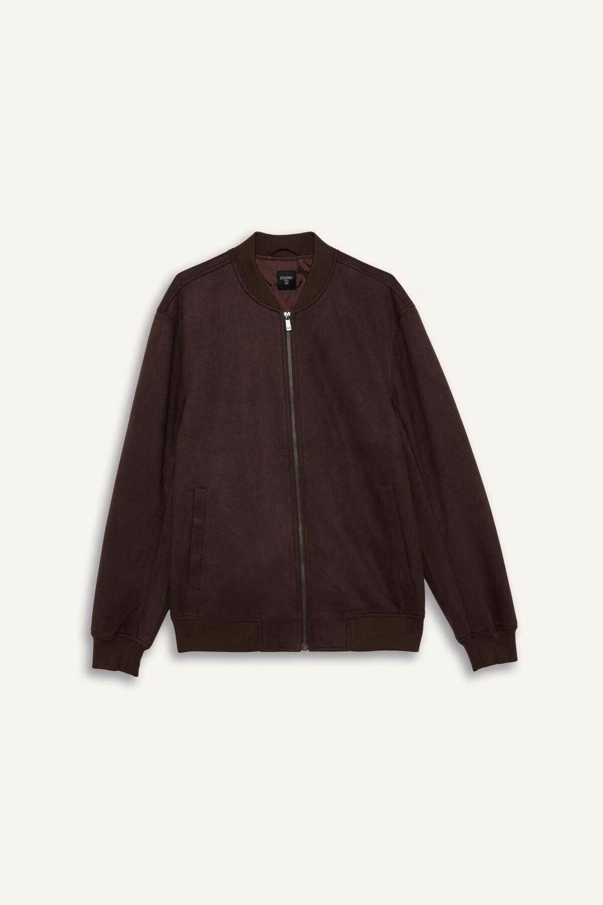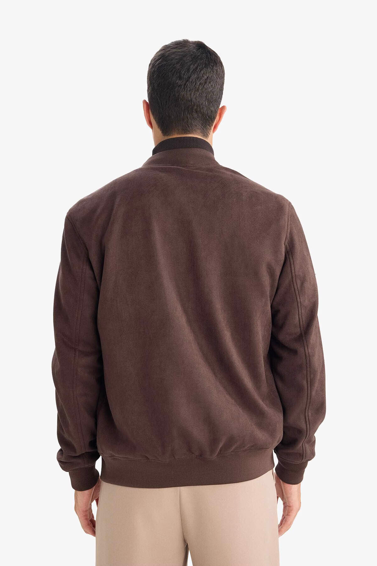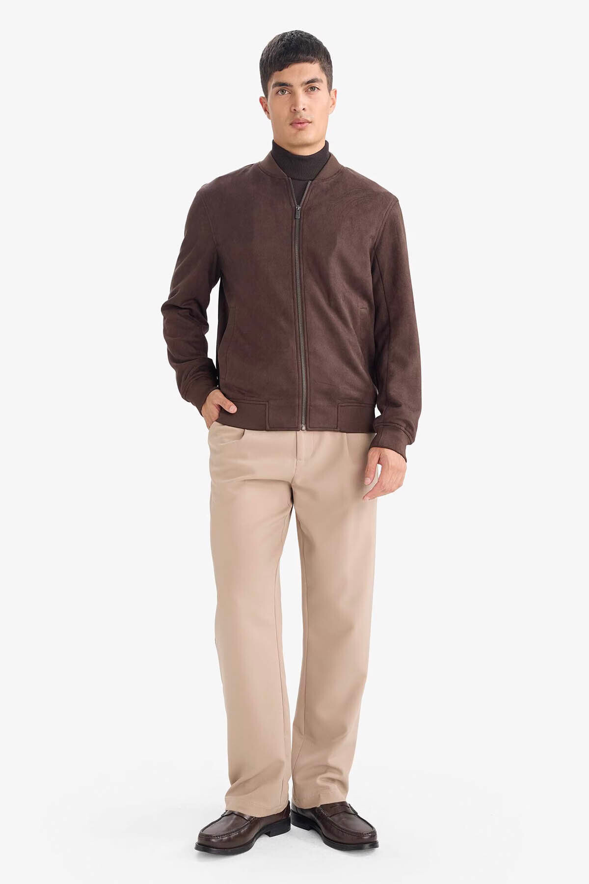 دفاکتو کاپشن مردانه قهوهای جیر مدل Bomber یقه کالج Slim Fit مدل A3866AX/BN192
