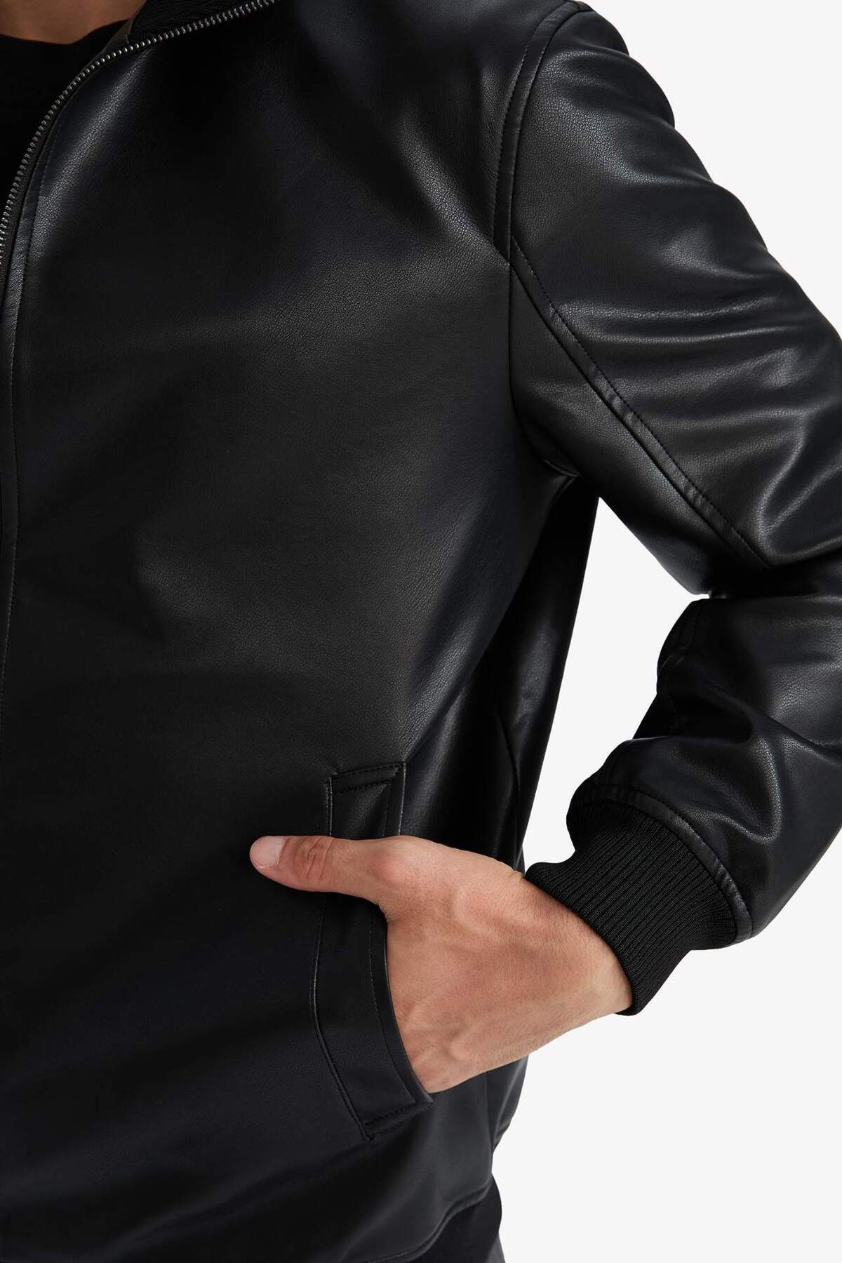 دفاکتو کاپشن چرم مصنوعی زیپدار یقه ایستاده باریک و باریک F7743AX26SP