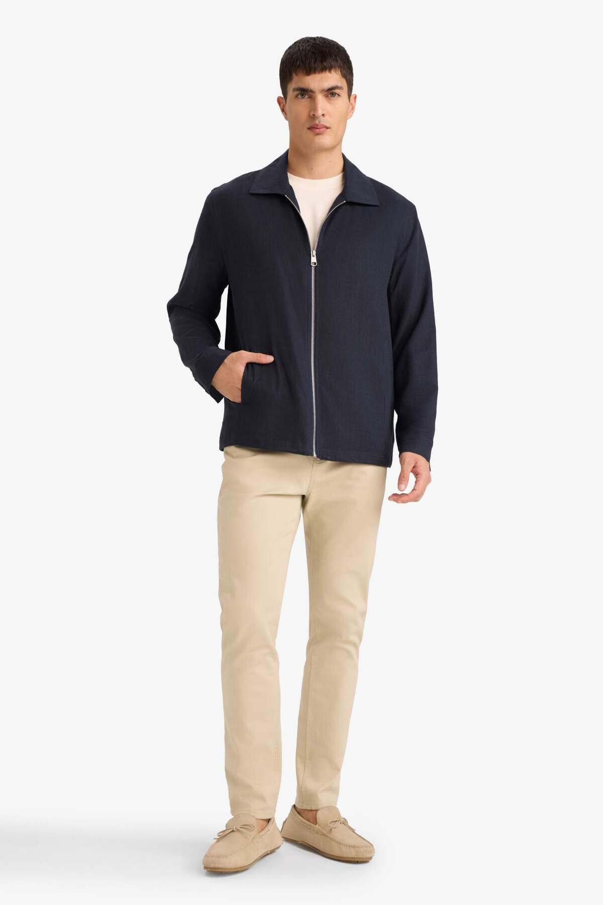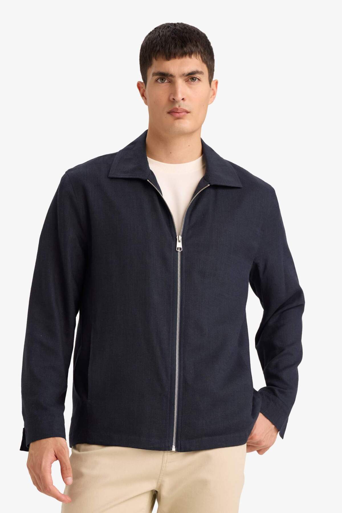 دفاکتو کاپشن کتان زیپدار معمولی F8522AX26SP