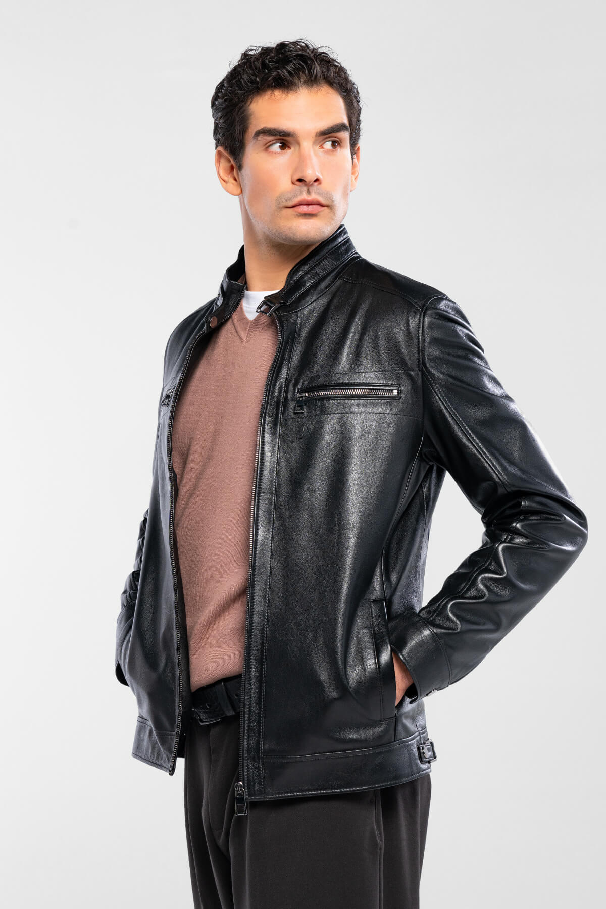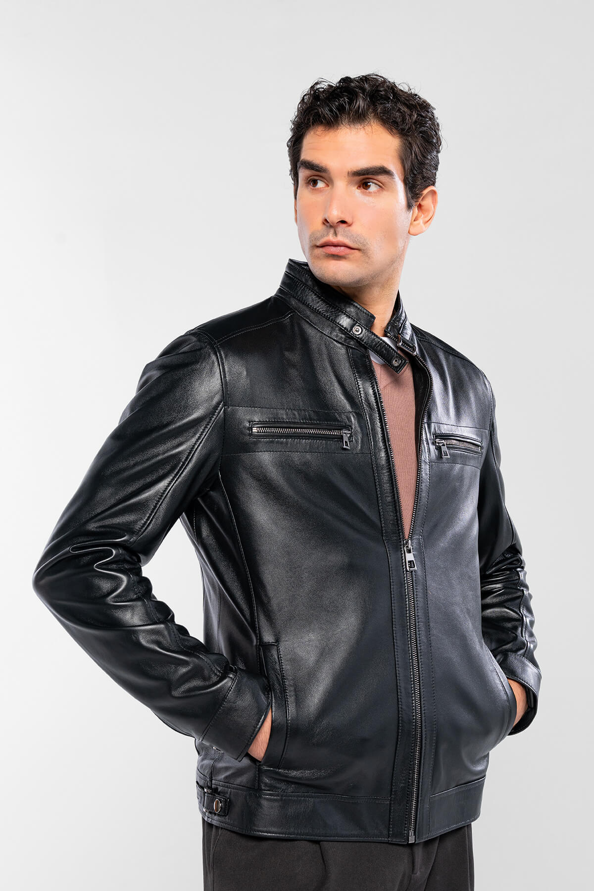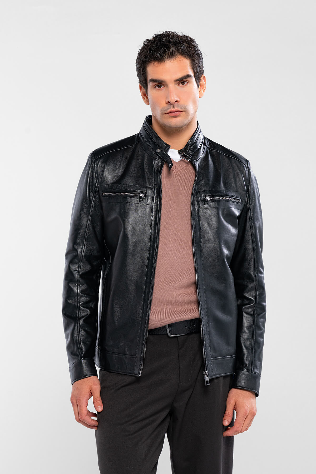 تامر تانجا ژاکت چرمی مشکی مردانه از جنس چرم اصل