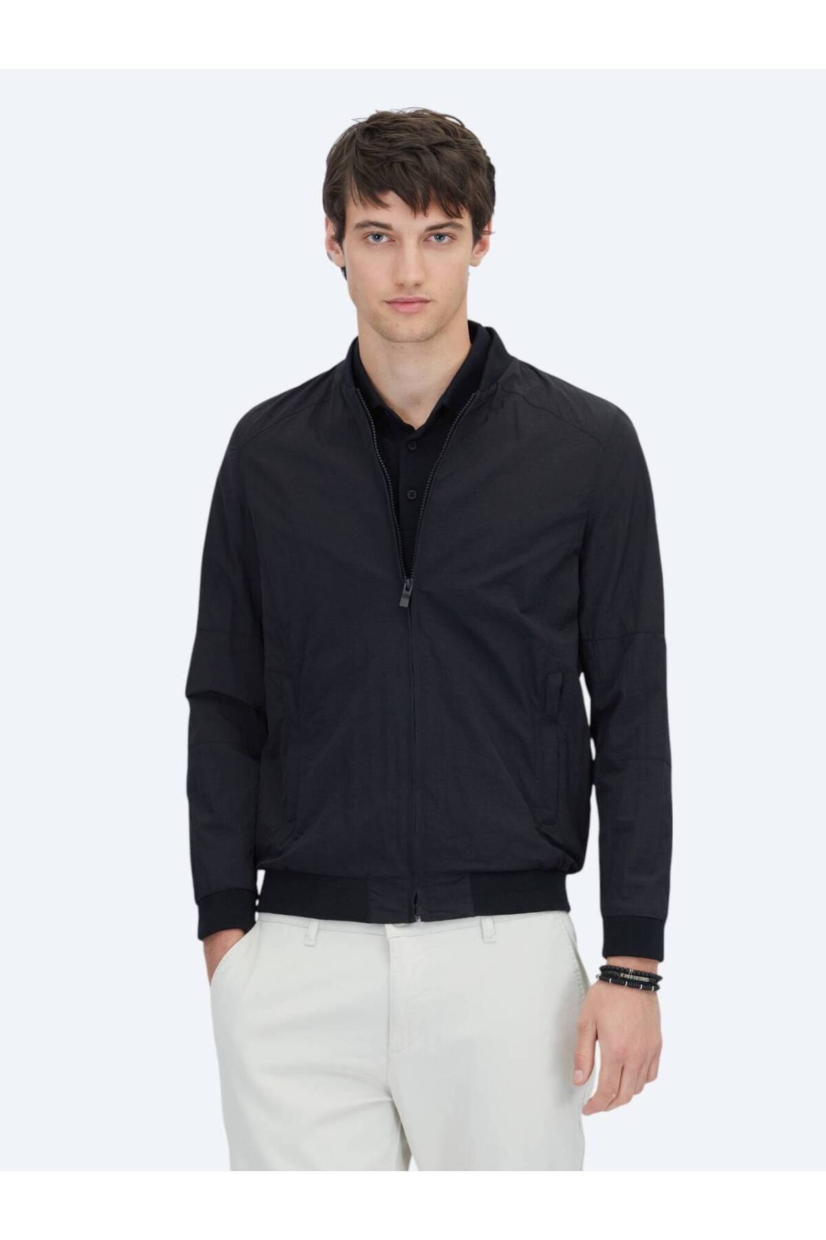 کیپ کت بافتنی غیررسمی مشکی یقه ایستاده معمولی