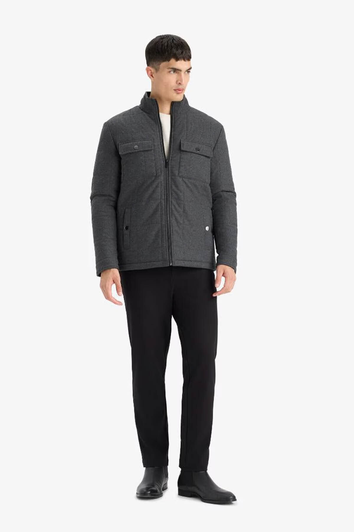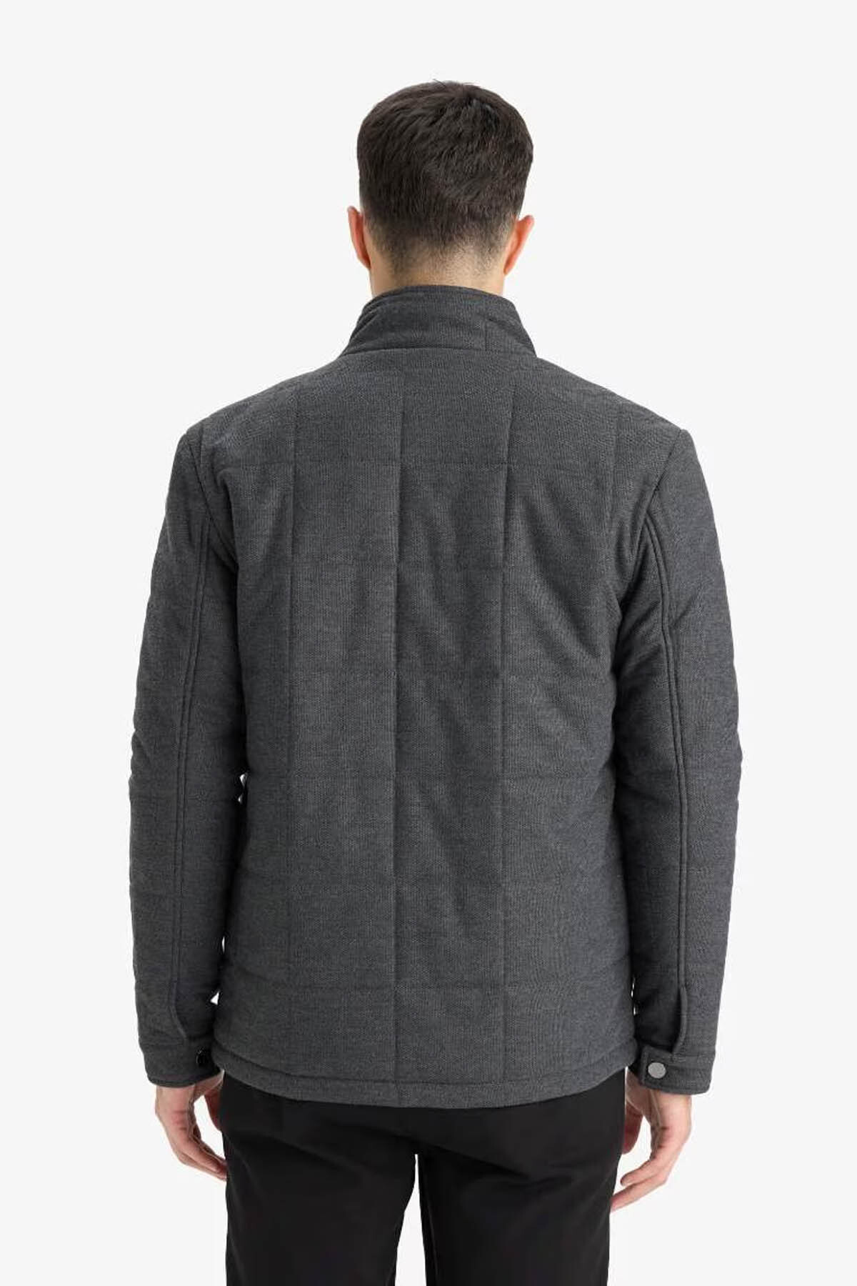دفاکتو کاپشن مردانه زمستانی اسلیم فیت، پنبهای، آنتراسیت، جیب زیپدار، E7888AX/AR167