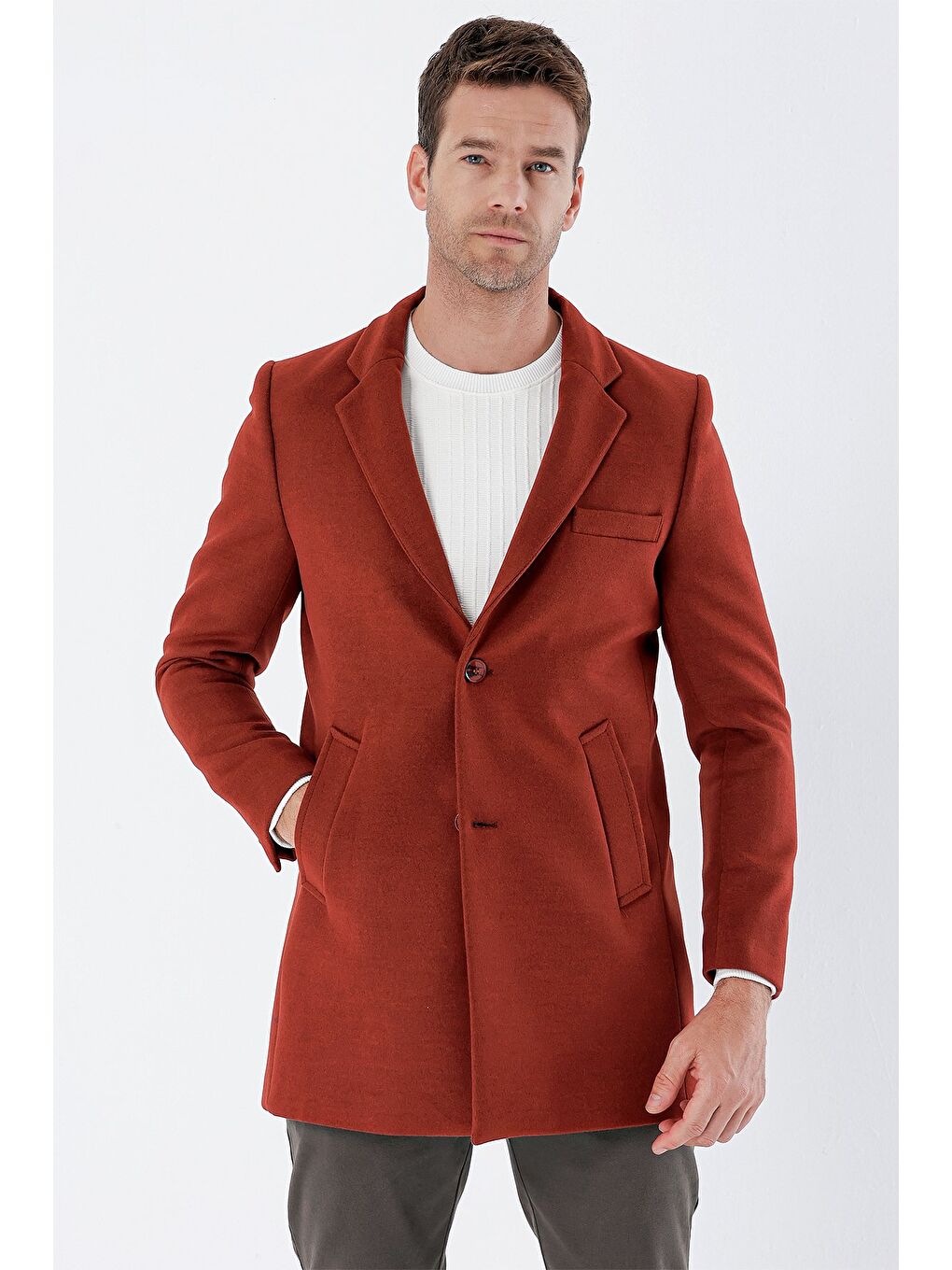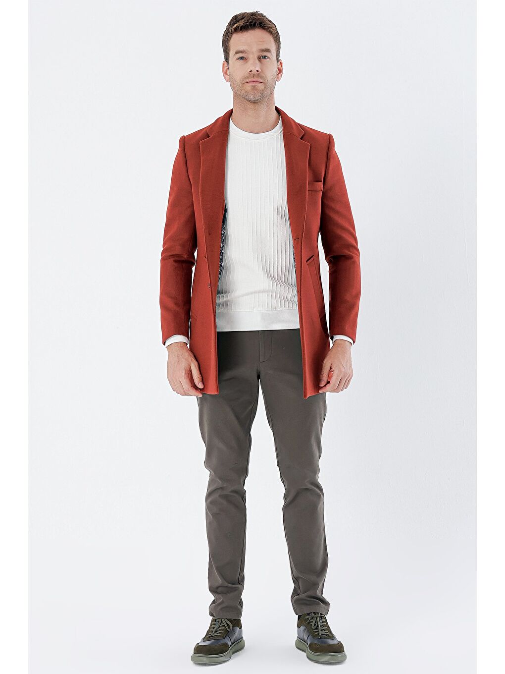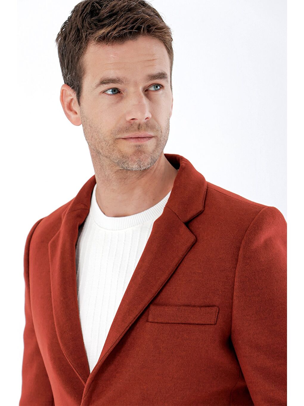 کت کلاسیک اسلیم کات طرح کاشی قهوهای یقه لحافی آستردار تک رنگ کد ۱۰۰۸۲۳۵۱۷۱