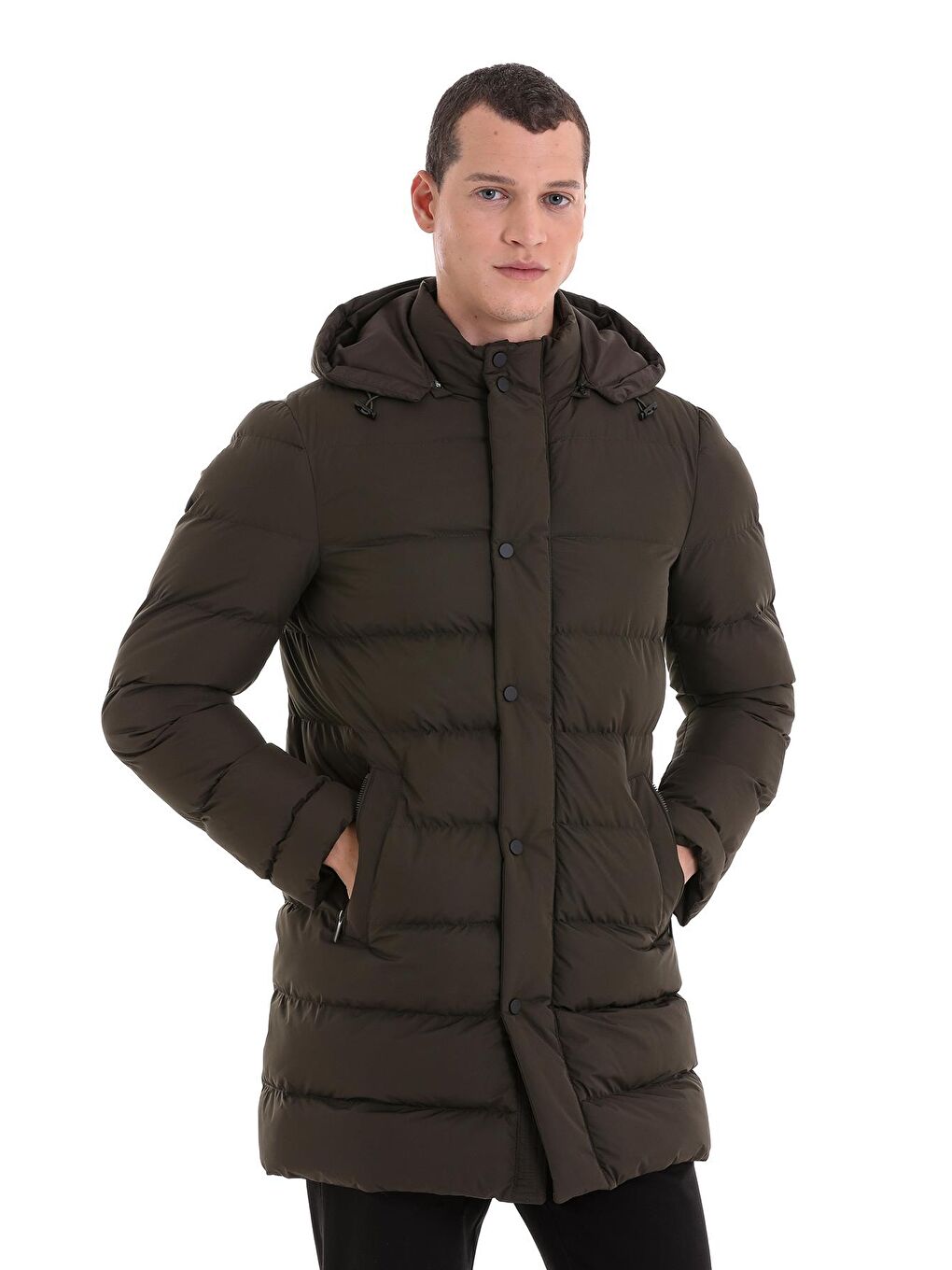 پالتو پایه کلاه دار یقه گرد خاکی اسلیم فیت