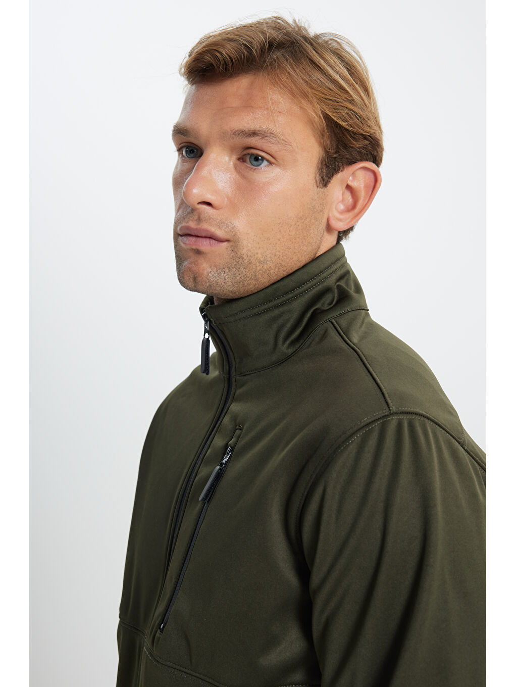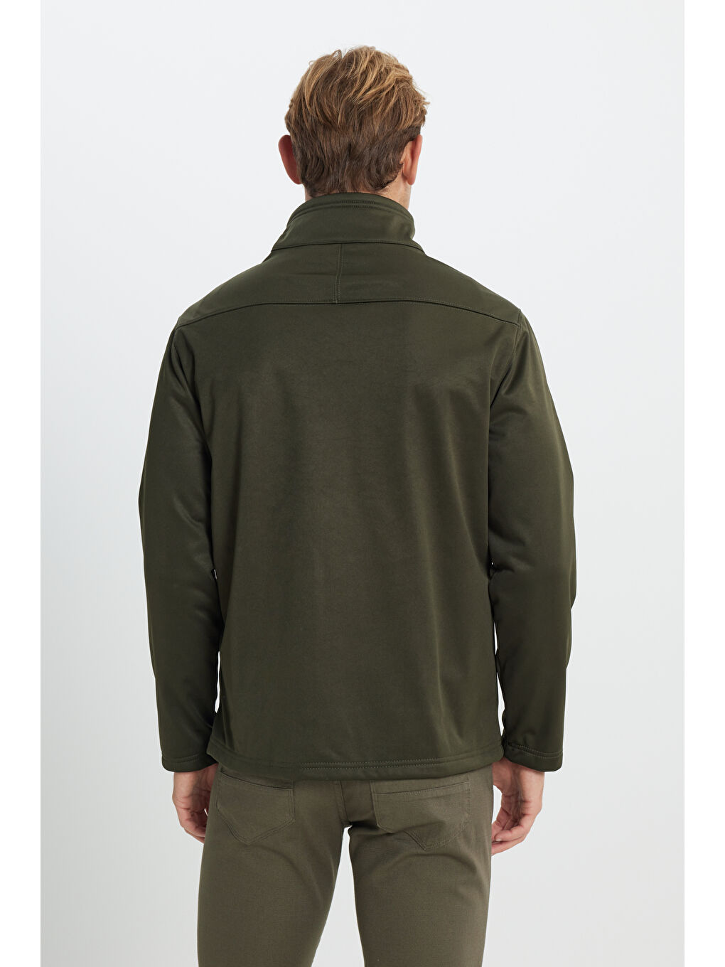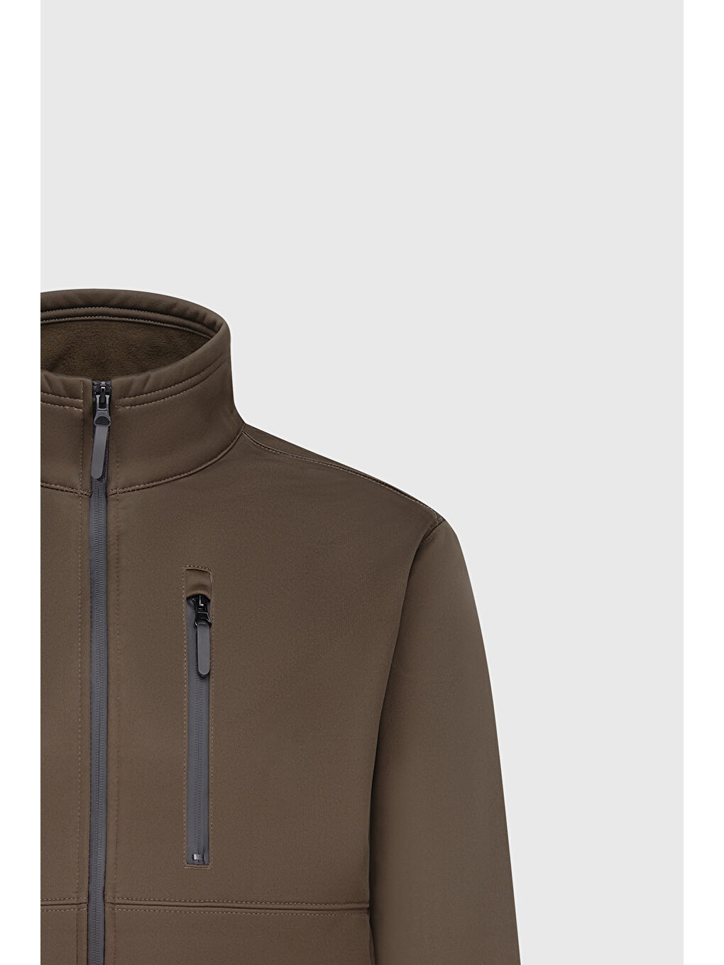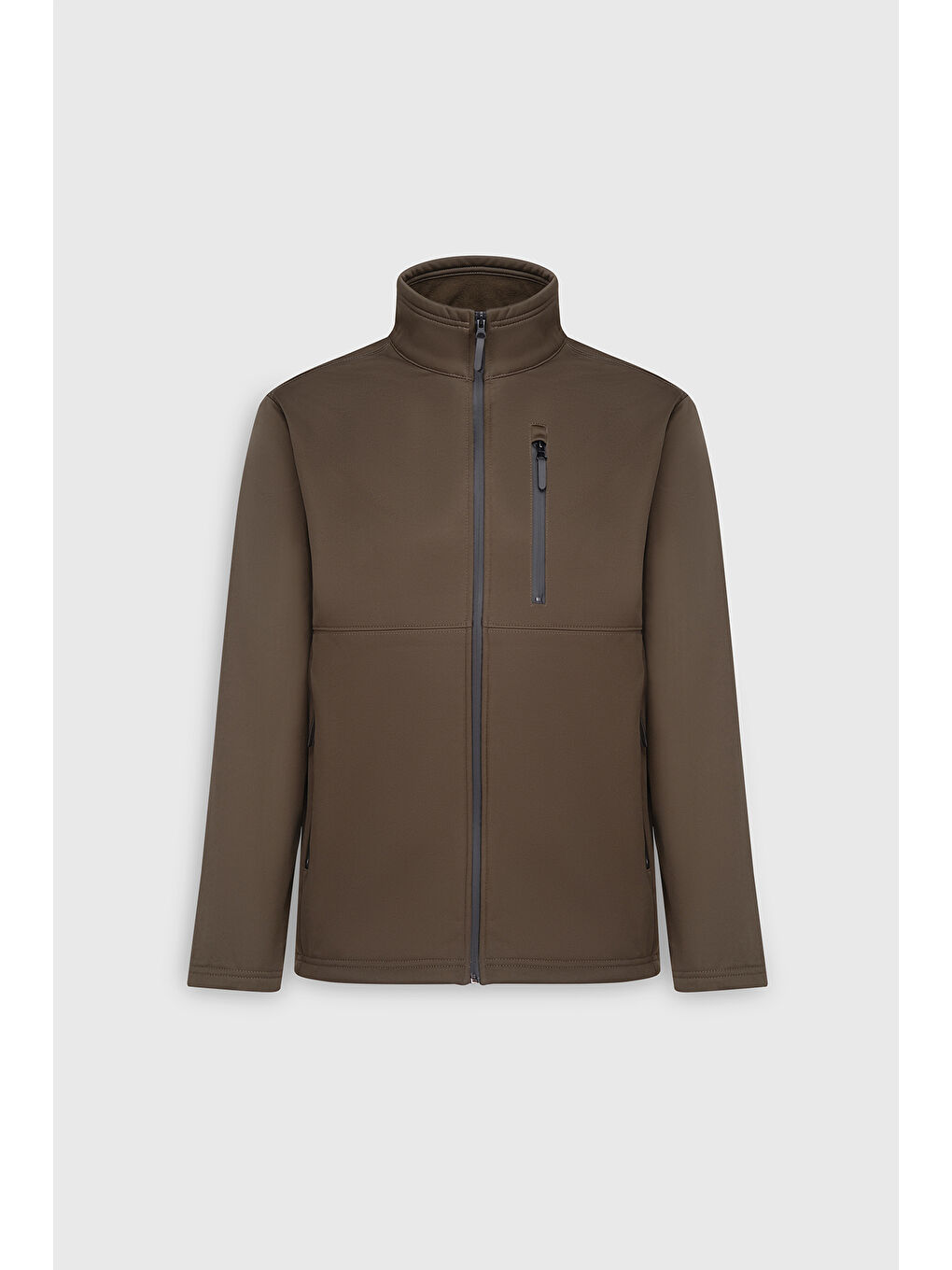 کت مردانه خاکی گرم و راحت، یقه ایستاده، برش کژوال