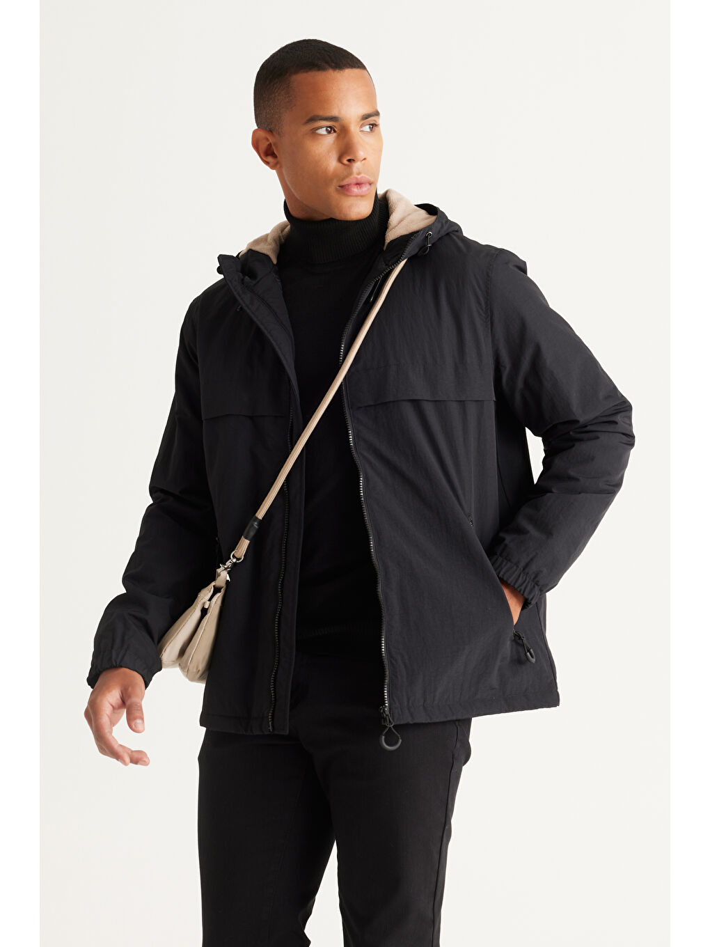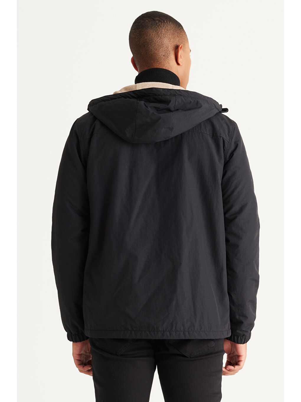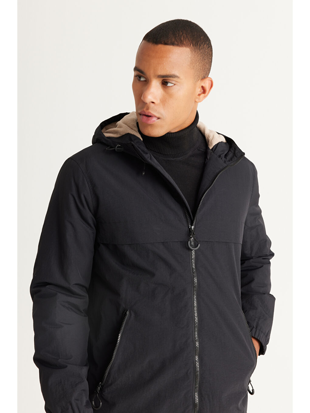 پالتو مردانه کلاهدار مشکی استاندارد سایز معمولی با جیبهای کناری