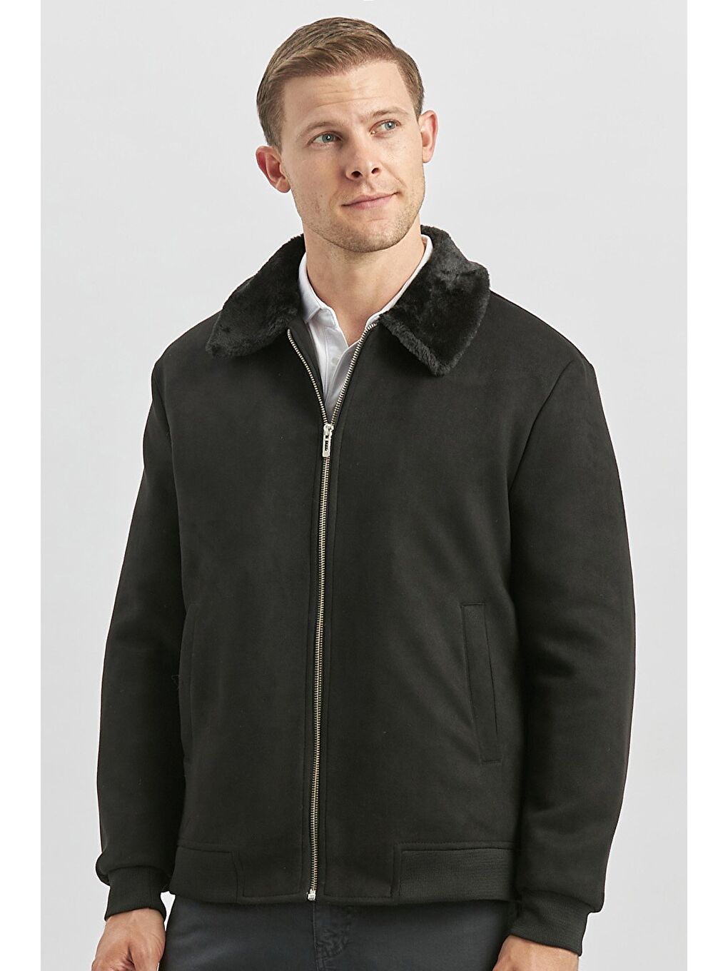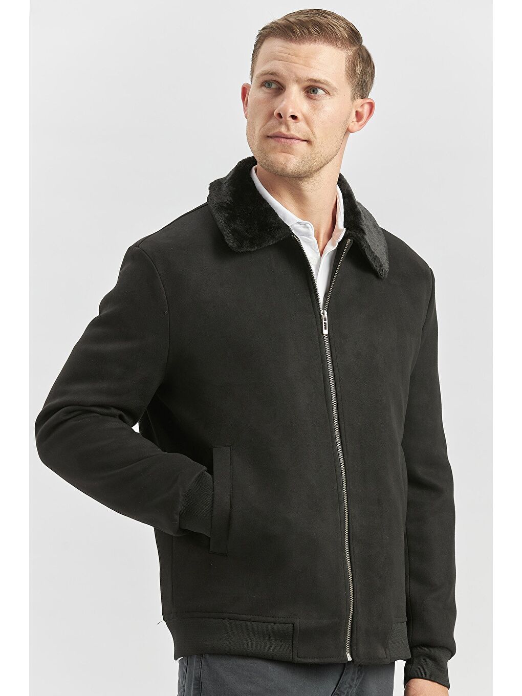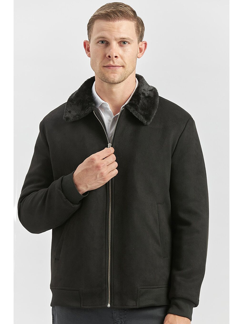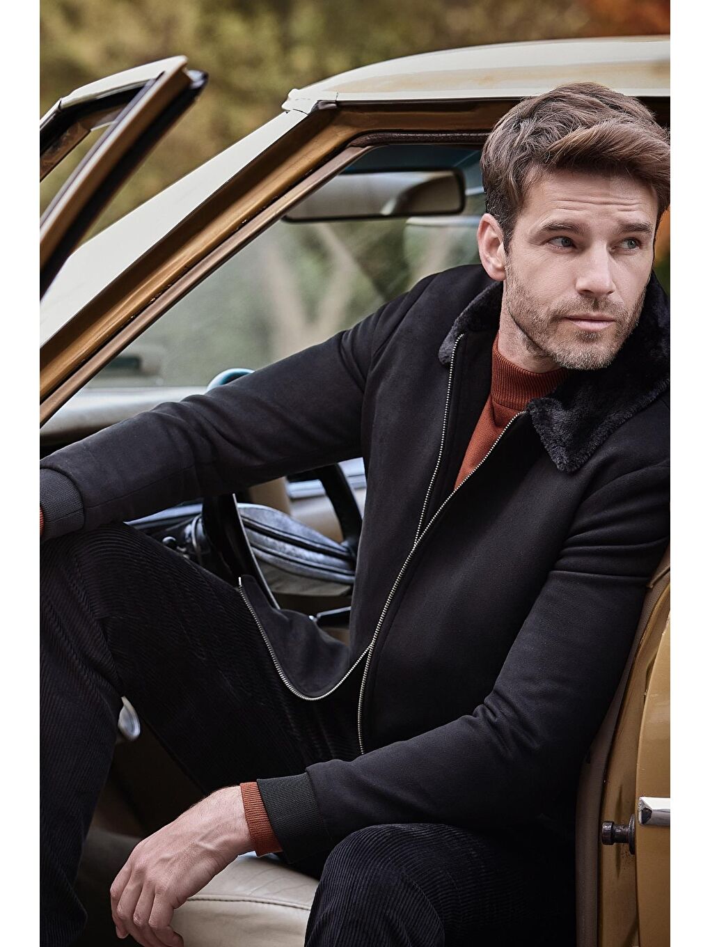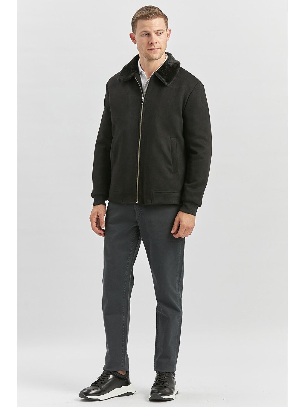 کت غیررسمی اسلیم کات یقه خز مشکی پر شده با آستر الاستان کد 1007245152