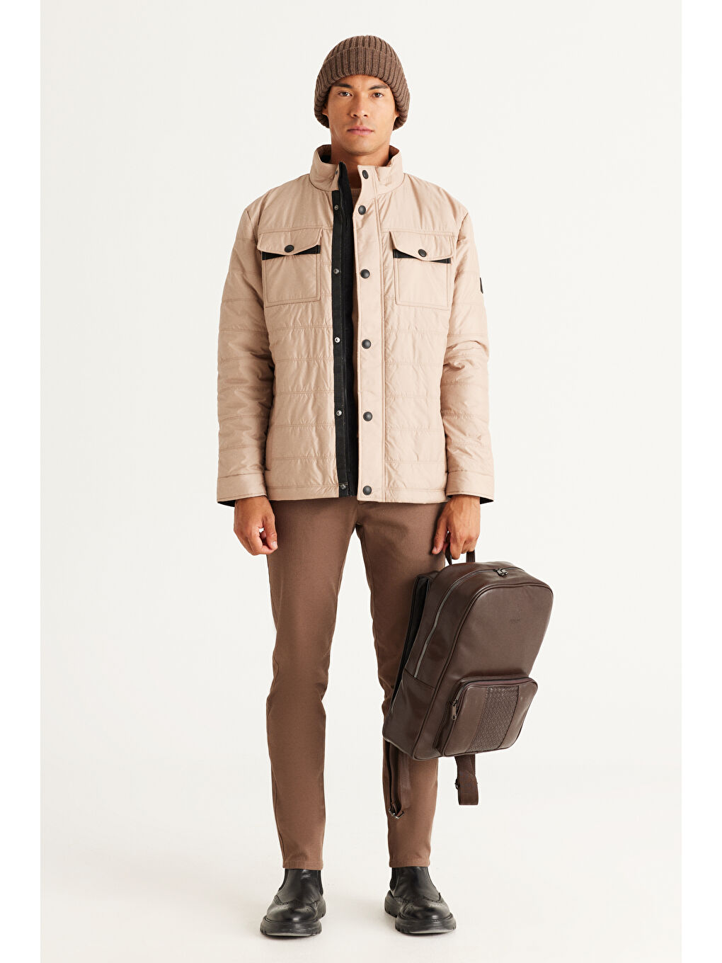 کت مردانه یقه ایستاده استاندارد فیت بژ استاندارد
