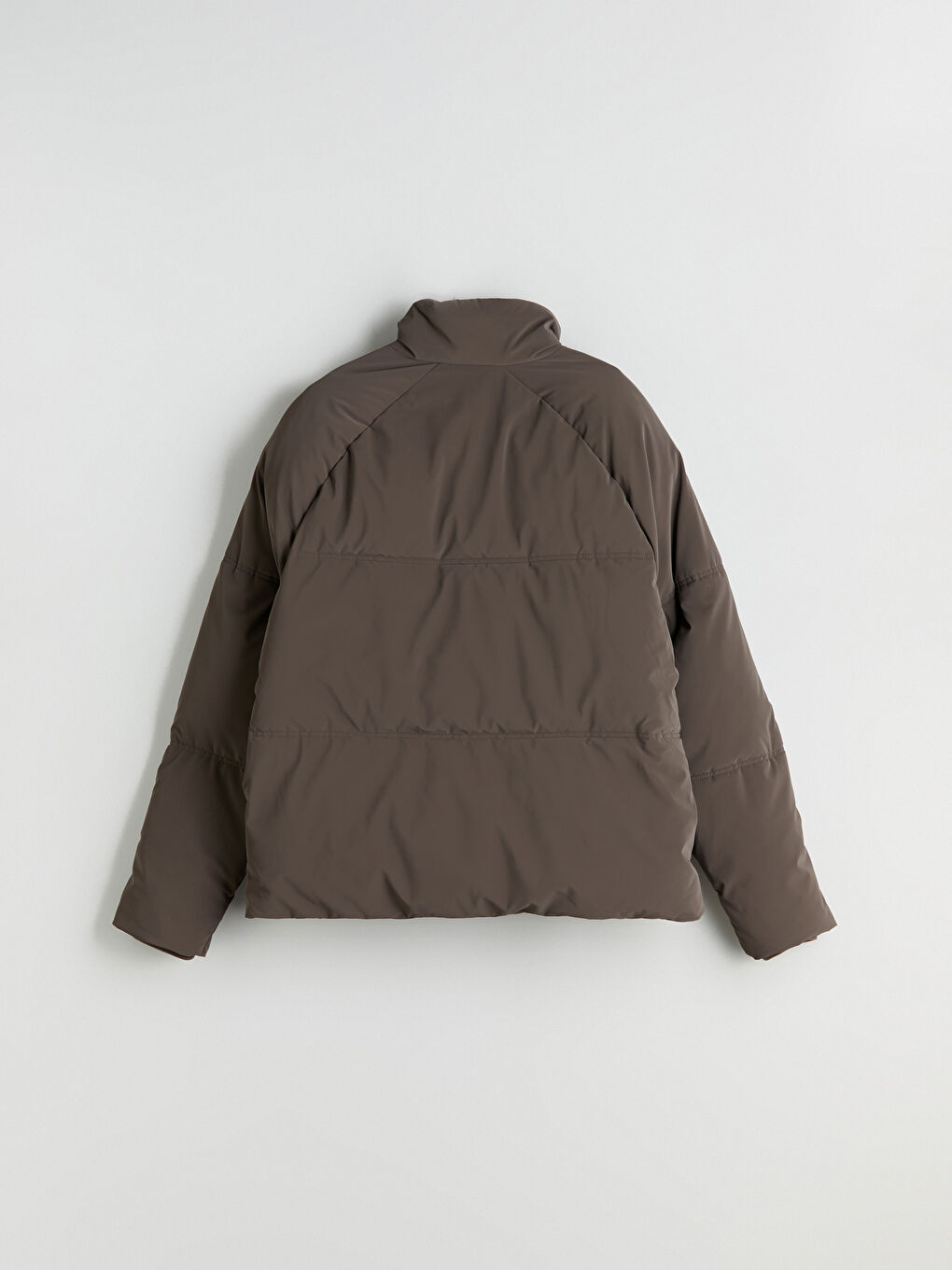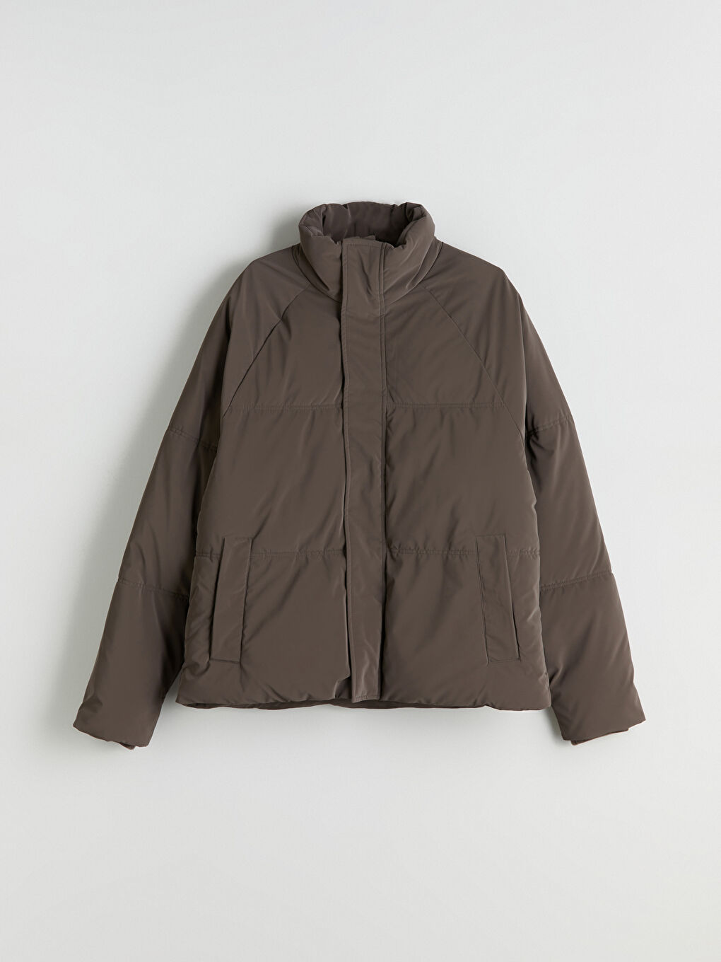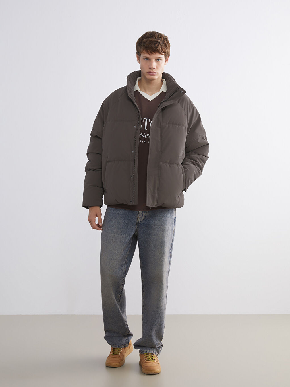 کاپشن پفی مردانه قهوهای یقه ایستاده راحت