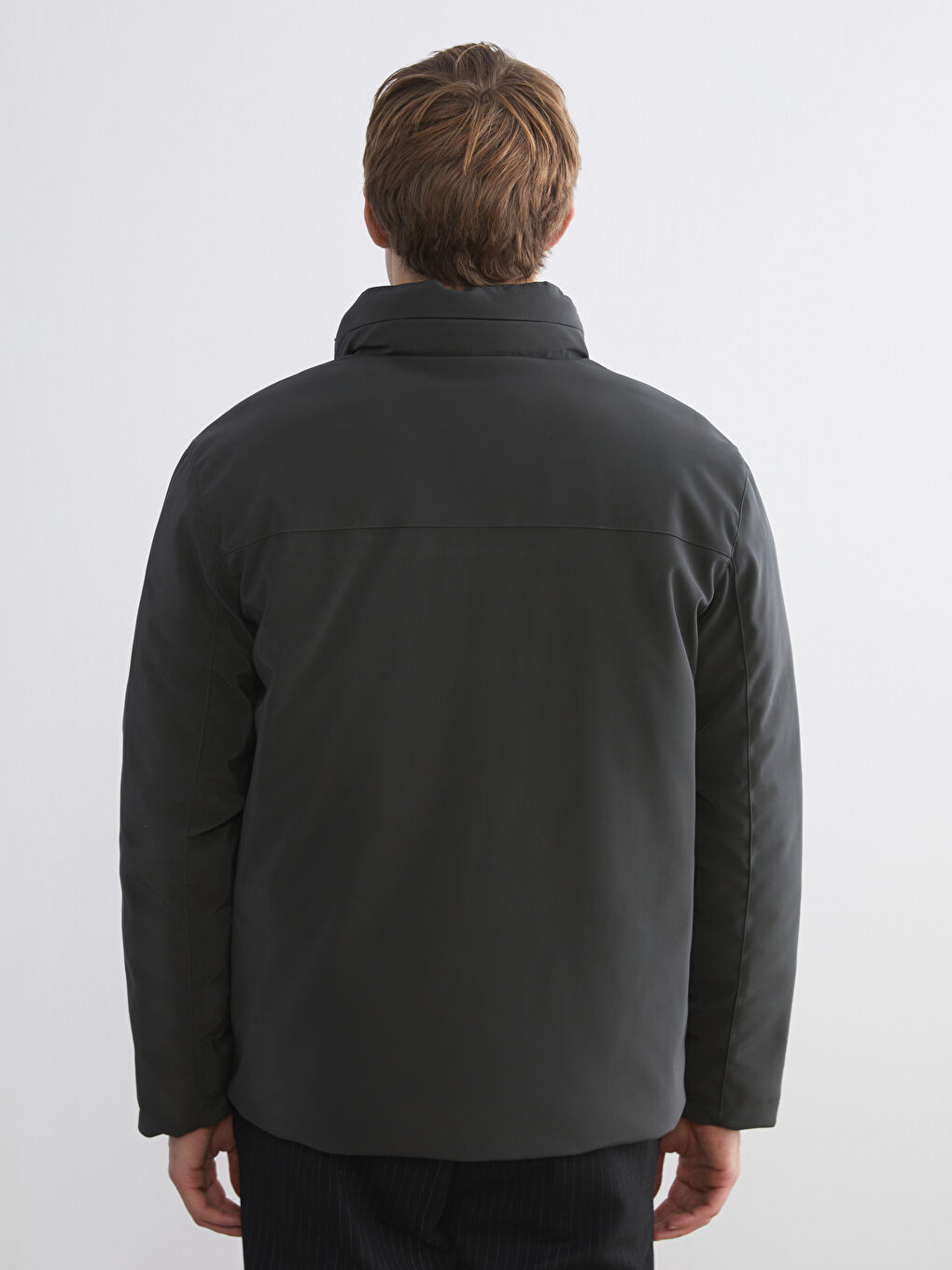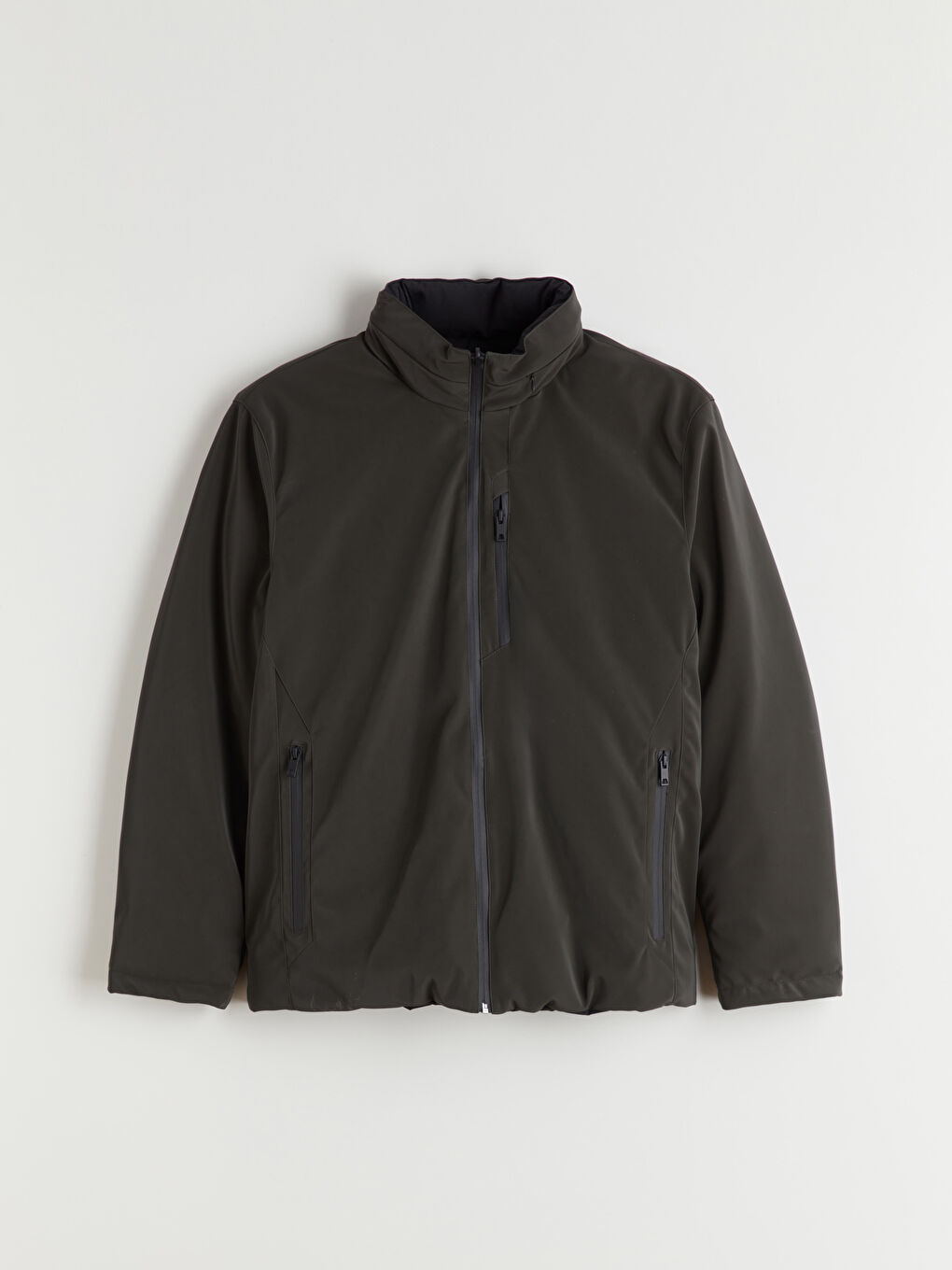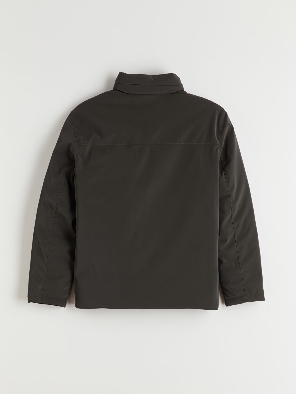کاپشن پفی مردانه یقه ایستاده طرح استاندارد خاکی