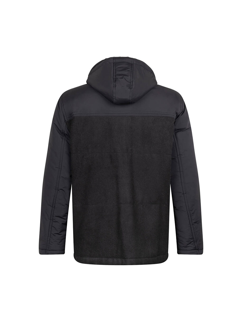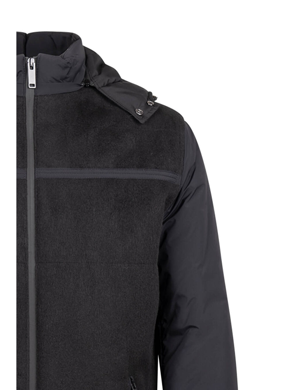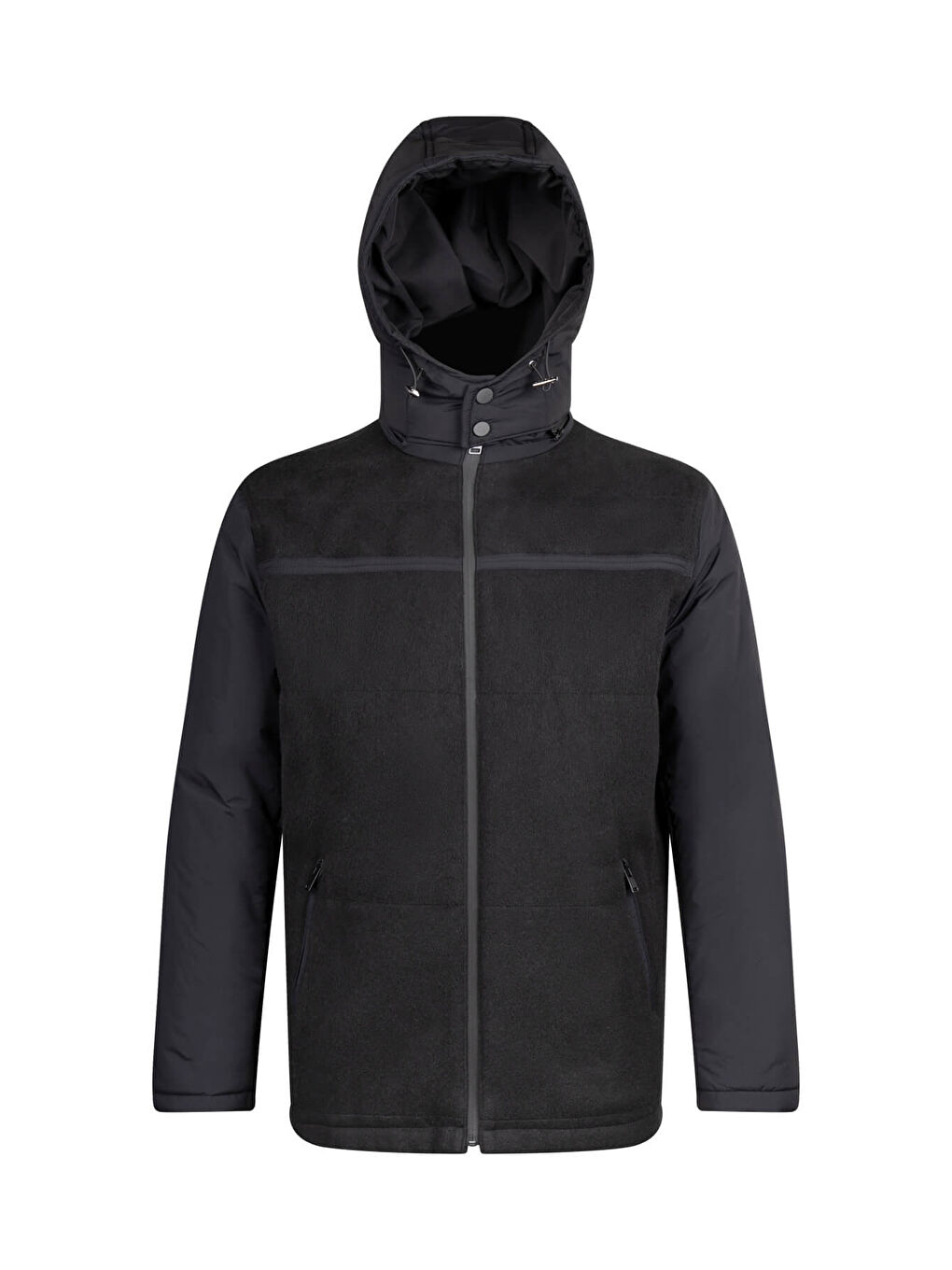 پالتو پشمی کلاهدار مشکی یقه گرد معمولی