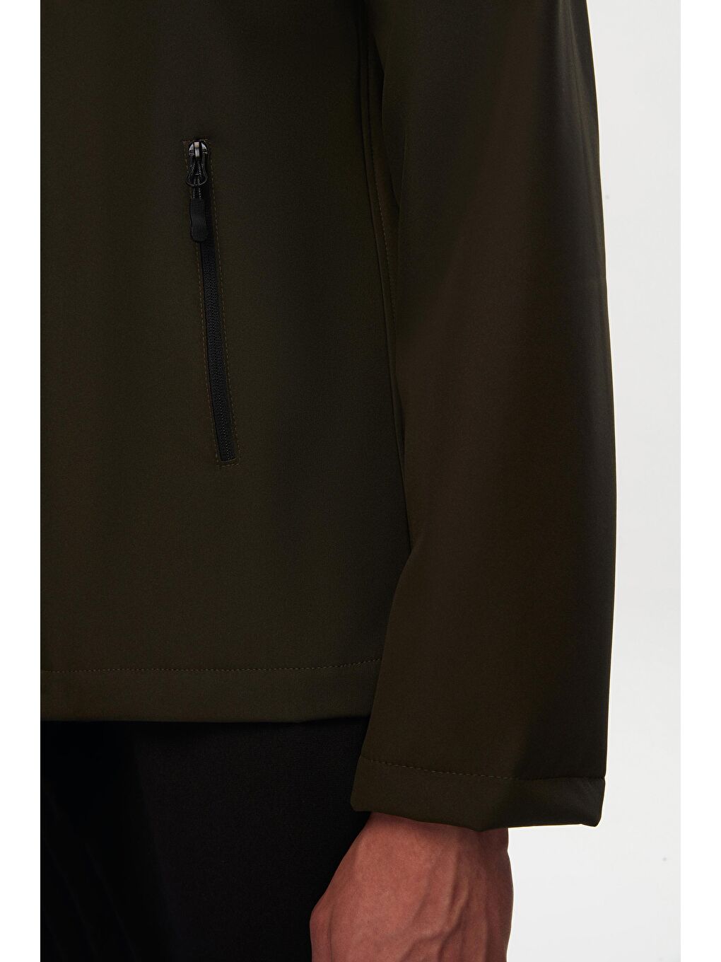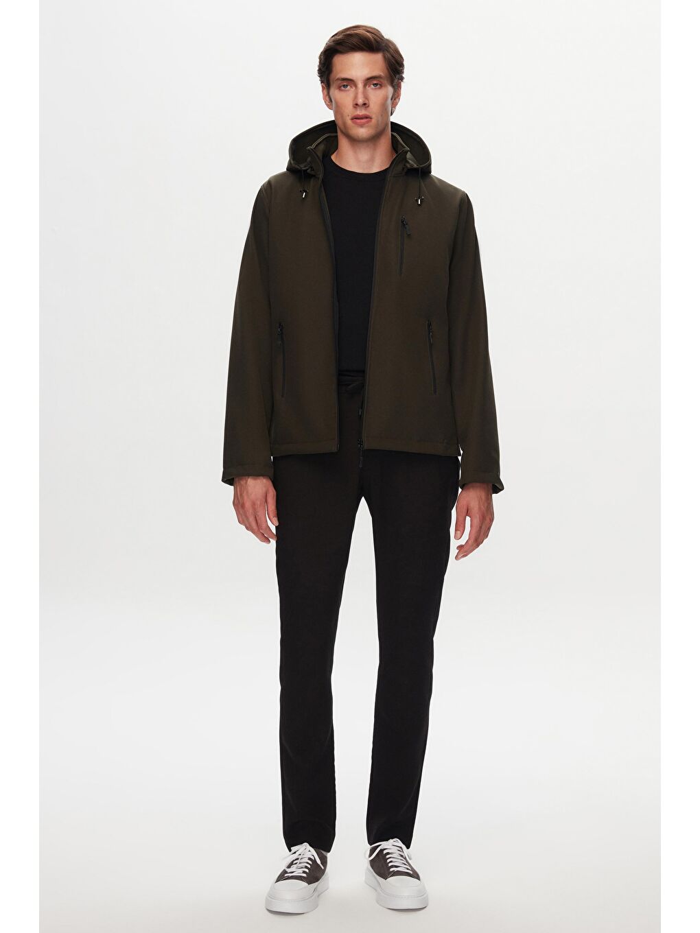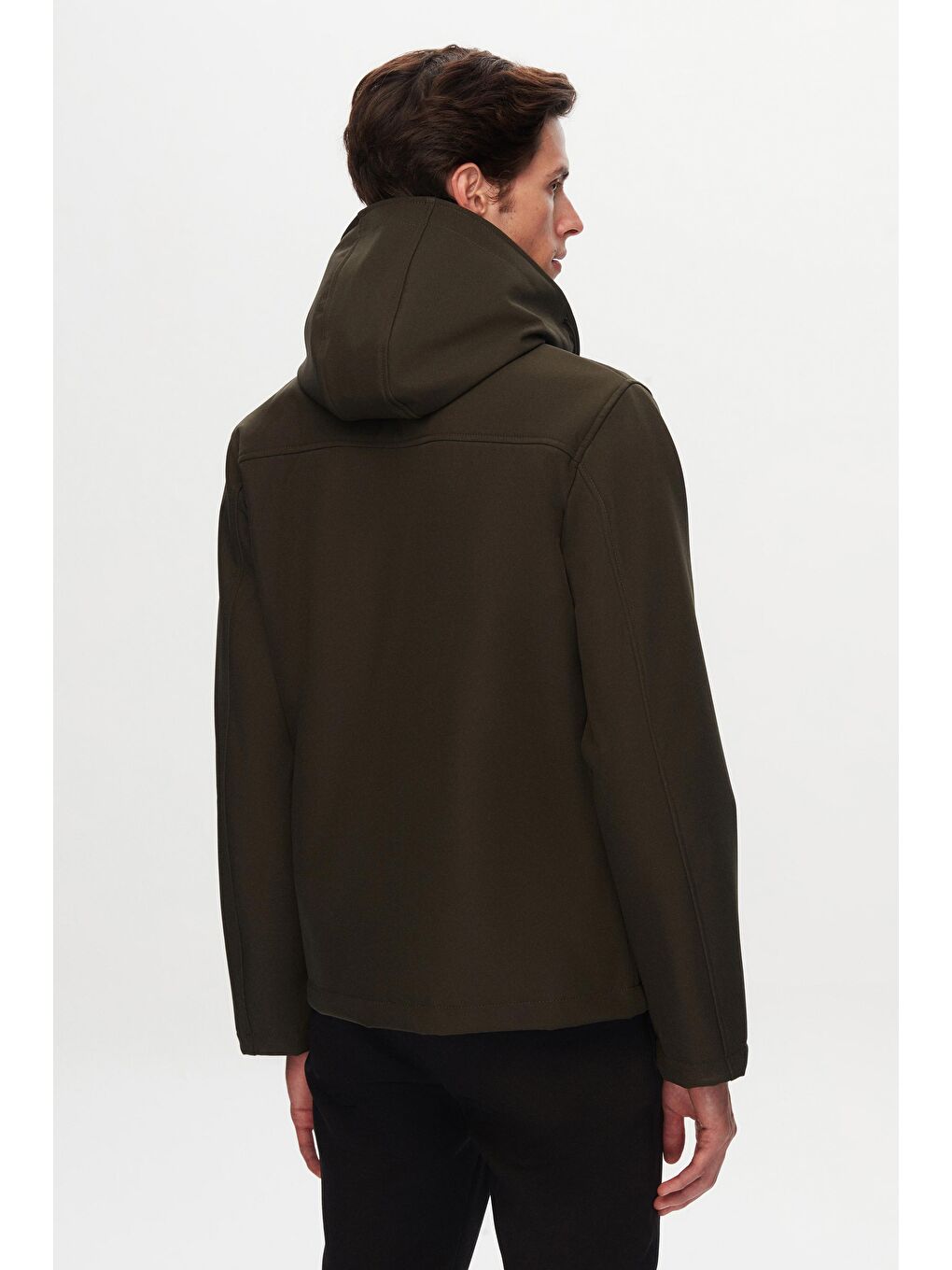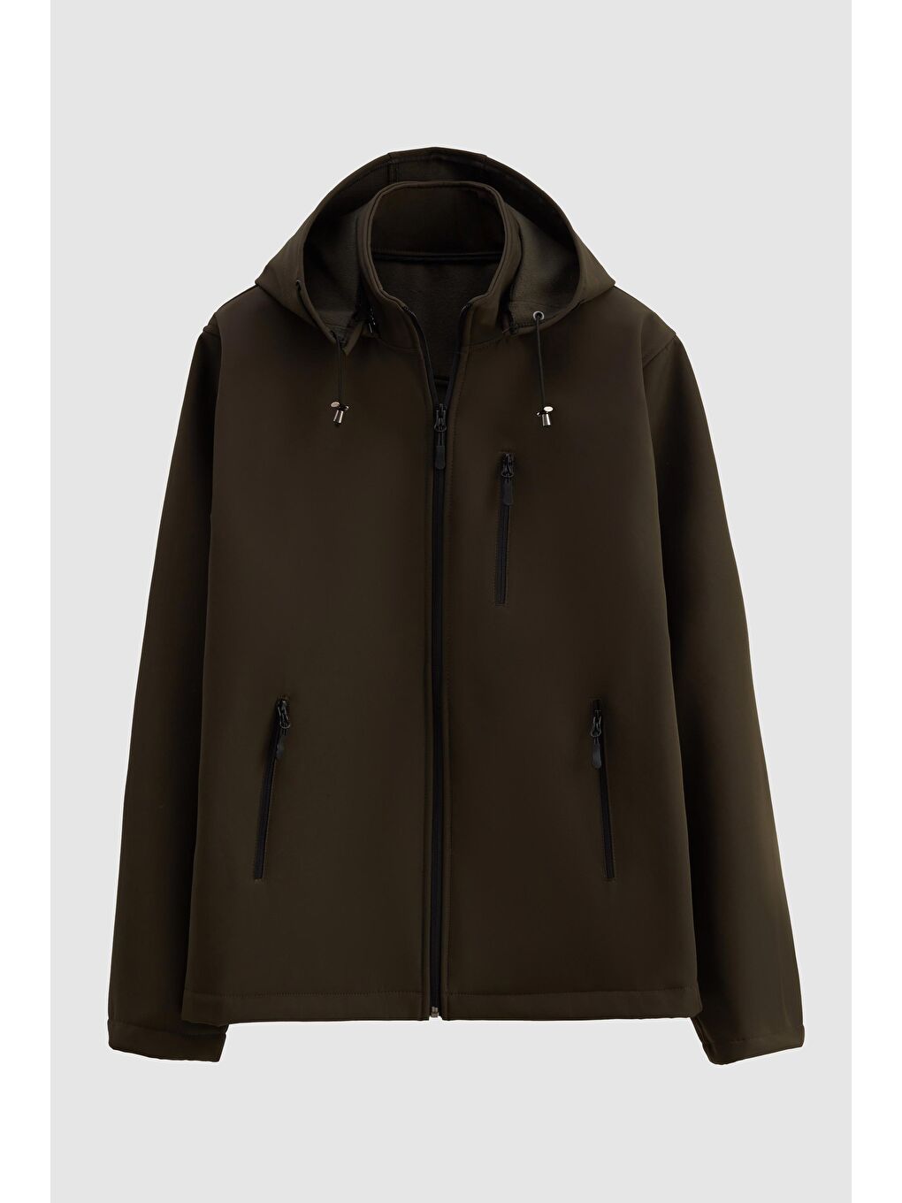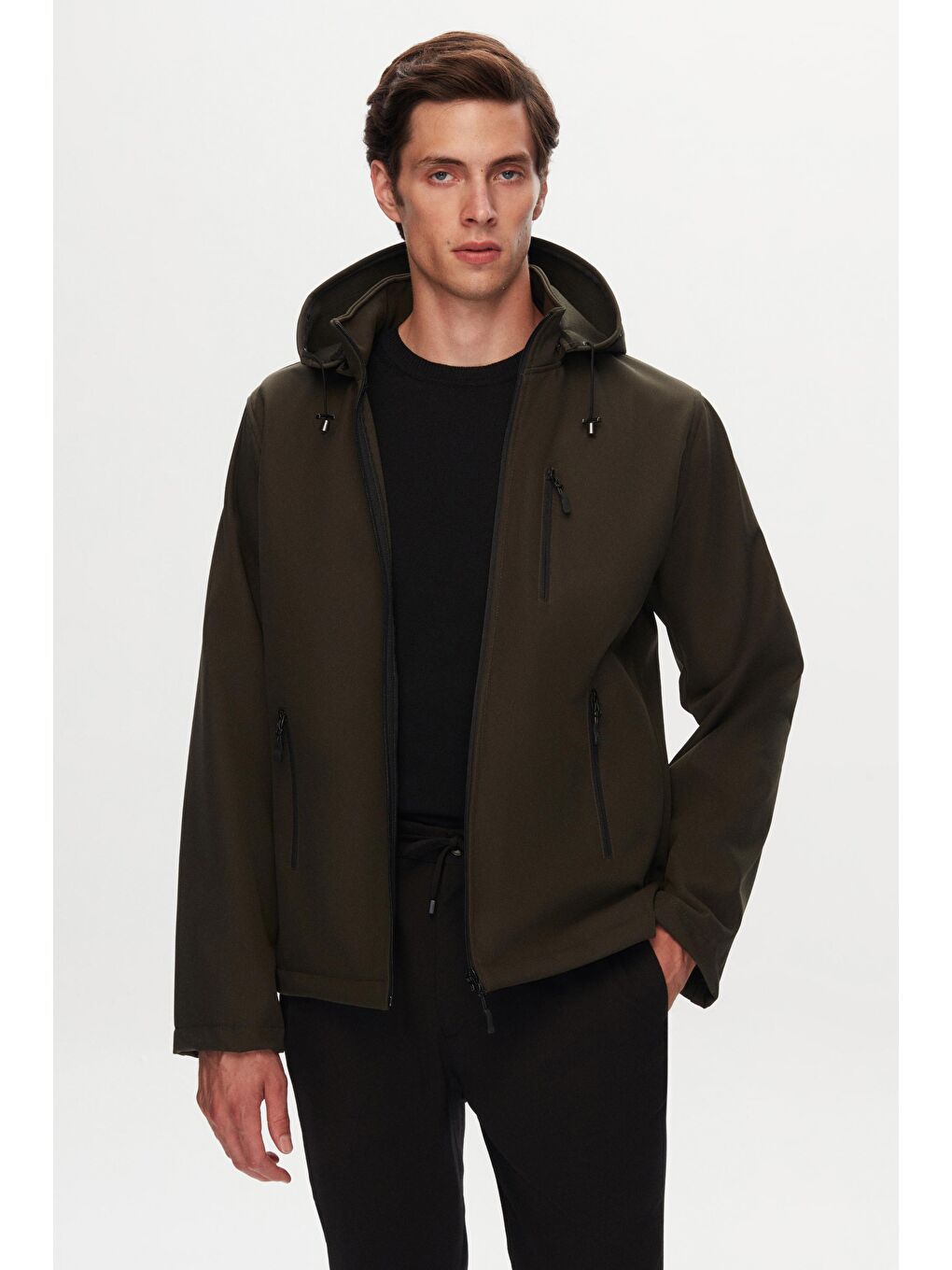 کاپشن غواصی پشمی کلاه دار قابل جدا شدن به رنگ خاکی و اسلیم فیت