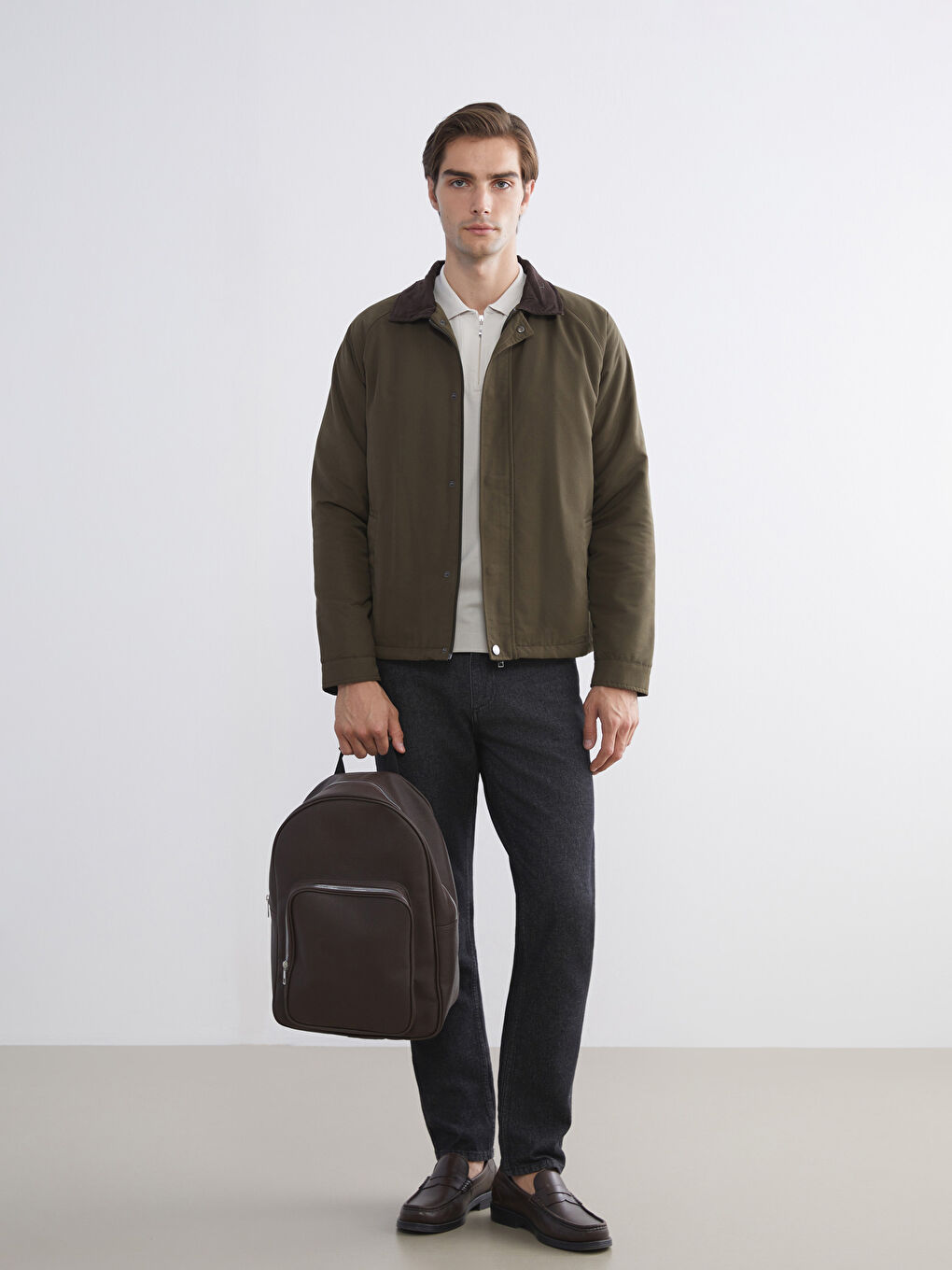 ژاکت مردانه یقه پیراهن طرح استاندارد خاکی