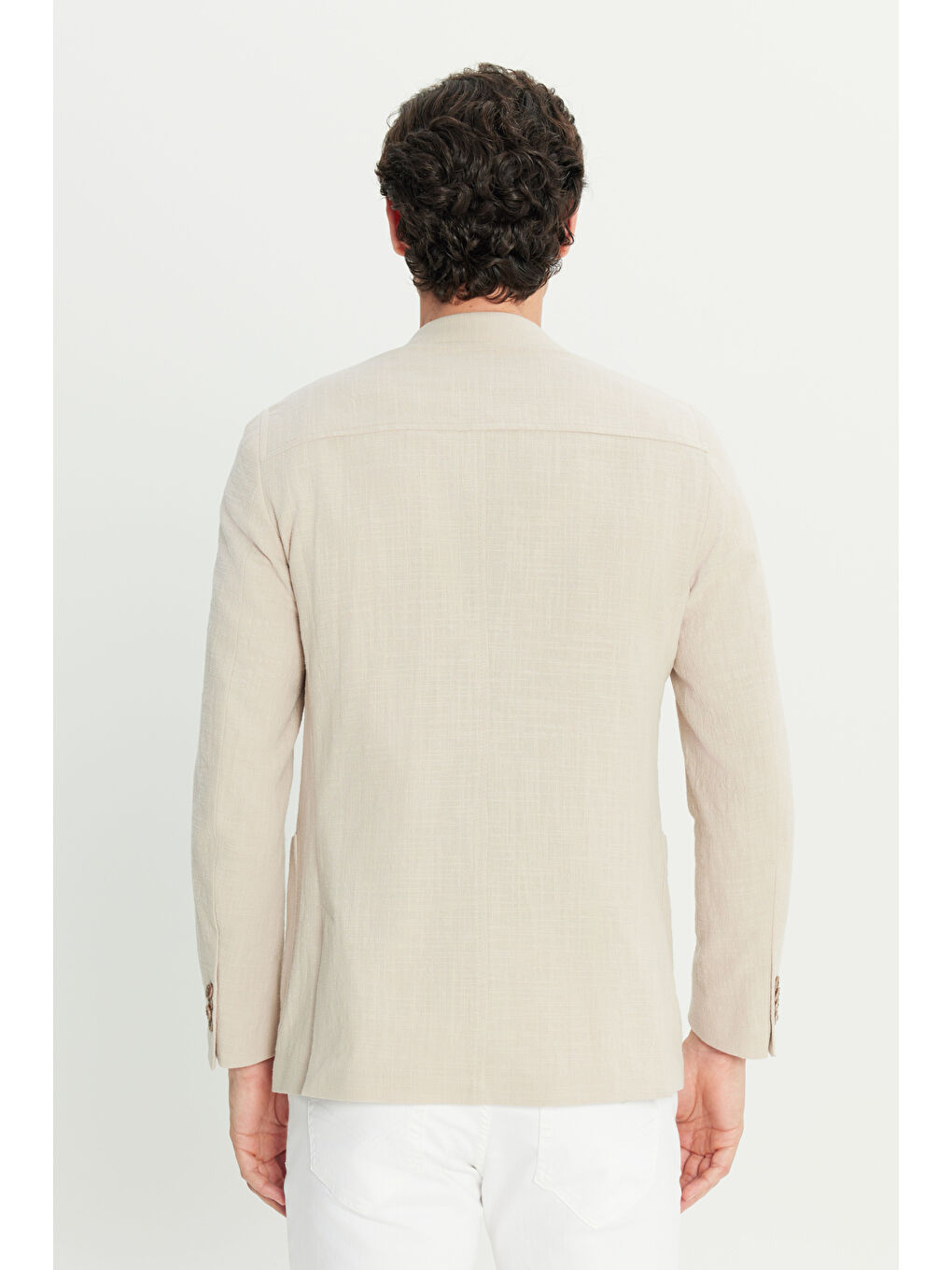 کاپشن مردانه ۱۰۰٪ پنبهای اسلیم فیت، یقه باریک، جیبدار، تک یقه، بژ