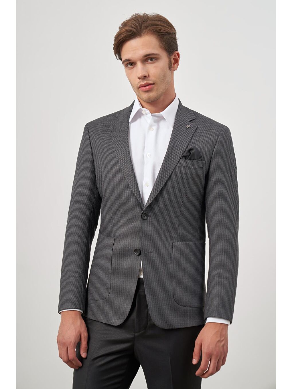 کاپشن کلاسیک اسلیم فیت طرح دندان شکاری آنتراسیت تیره یقه تک رنگ 6 دراپ کد 1002245106