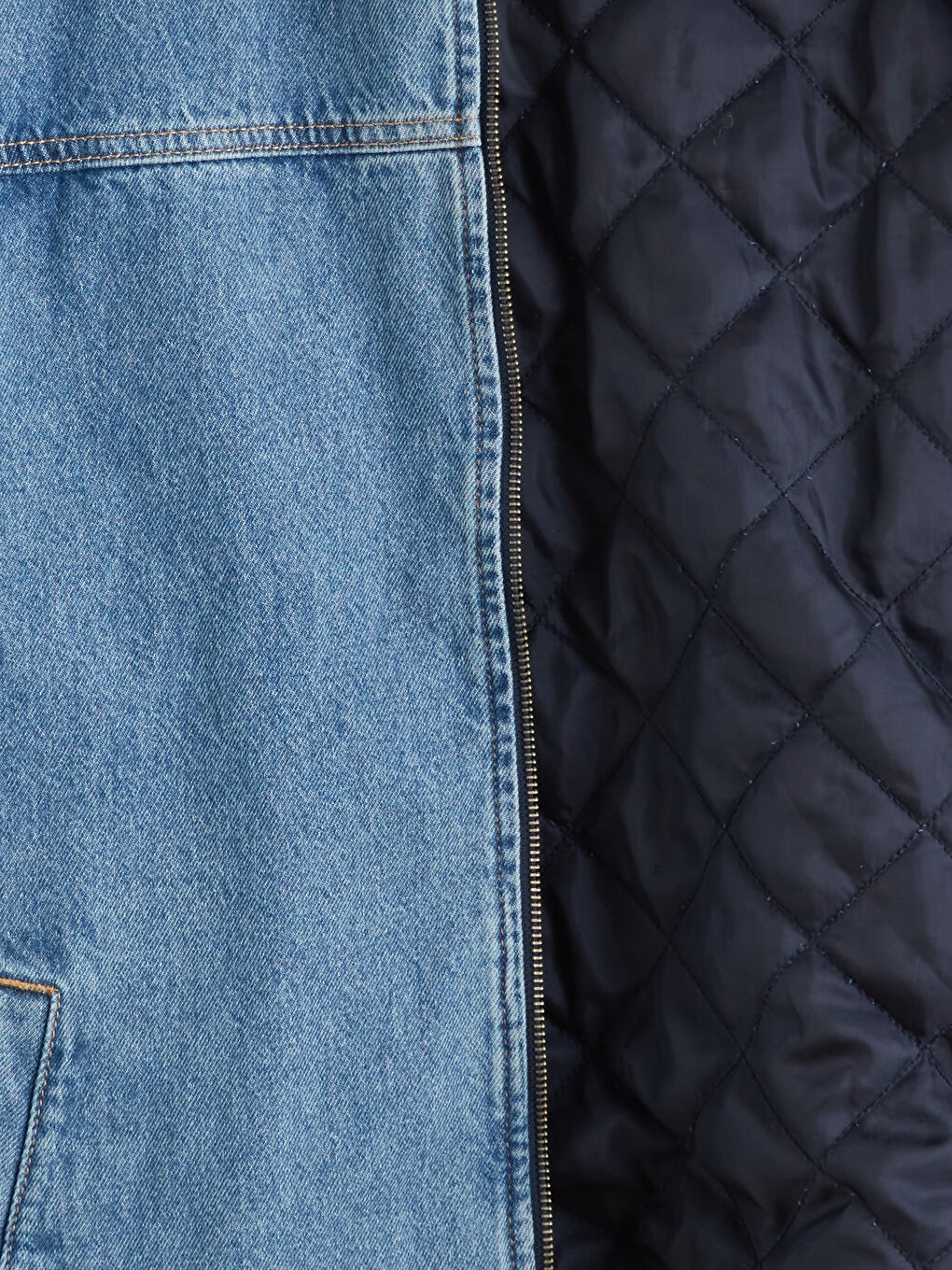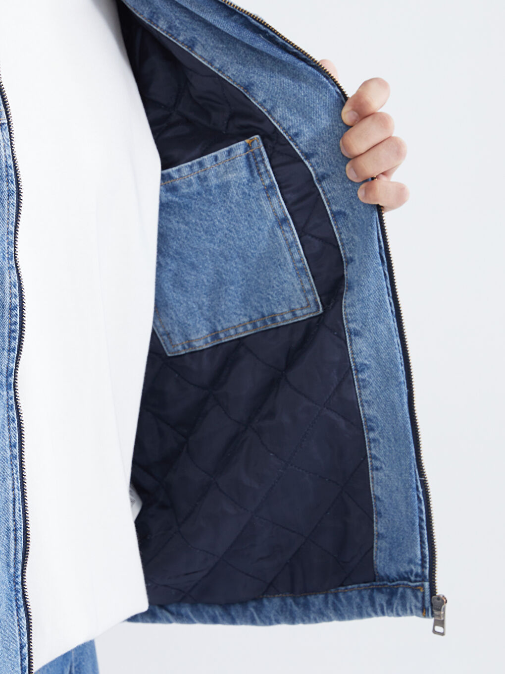 کاپشن جین مردانه با طراحی راحت و خوشفرم، با زیپ بسته میشود.