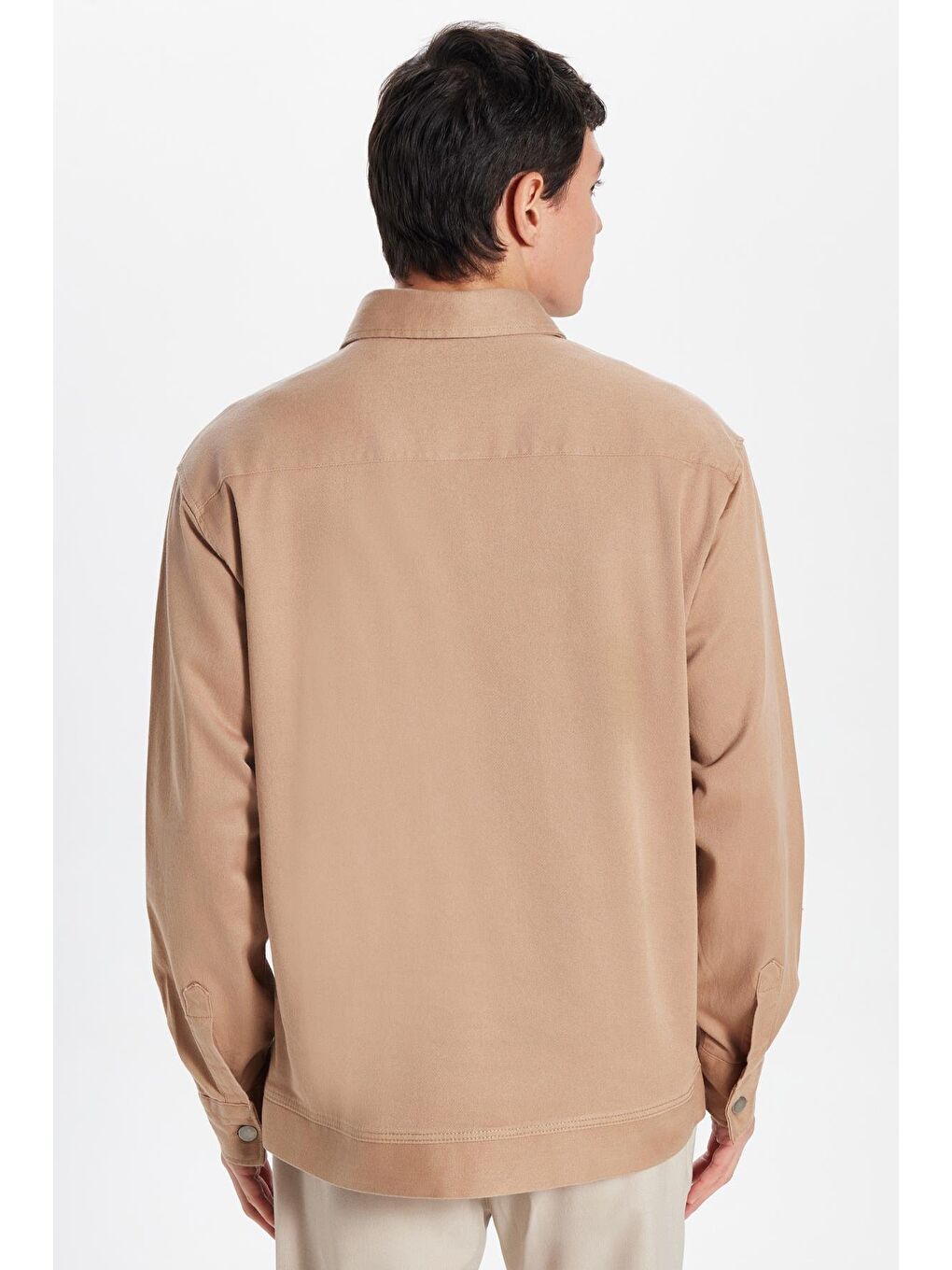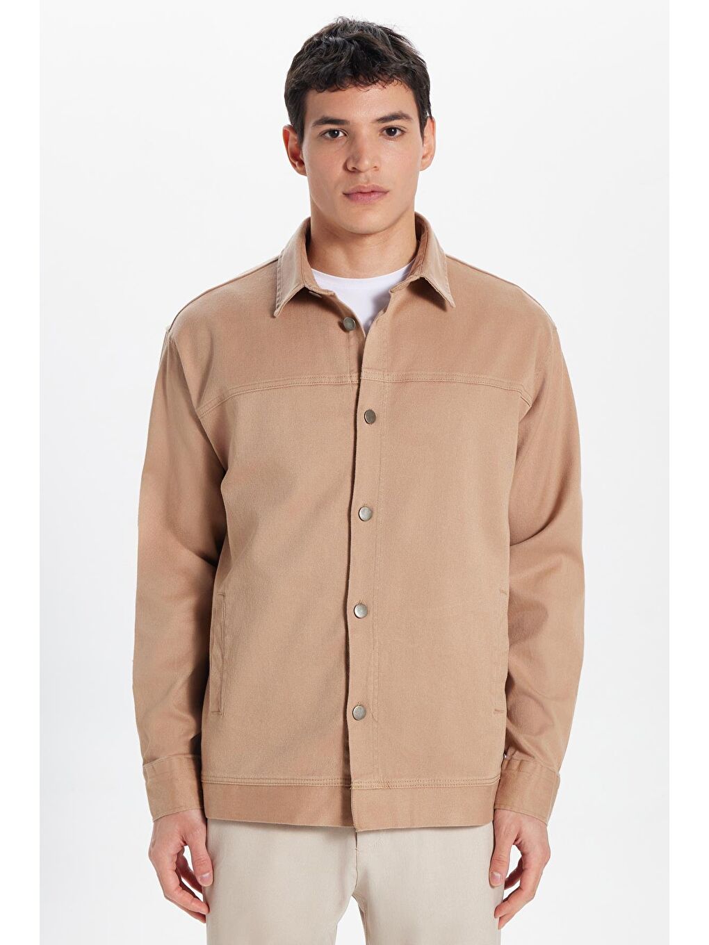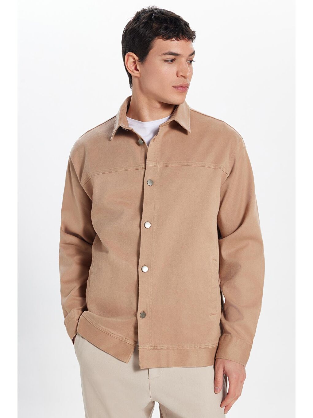 پیراهن مردانه بژ، راحت و گشاد، طرح گاباردین، جنس الاستان، جیب بغل، طرح سنگ، مناسب برای استراحت