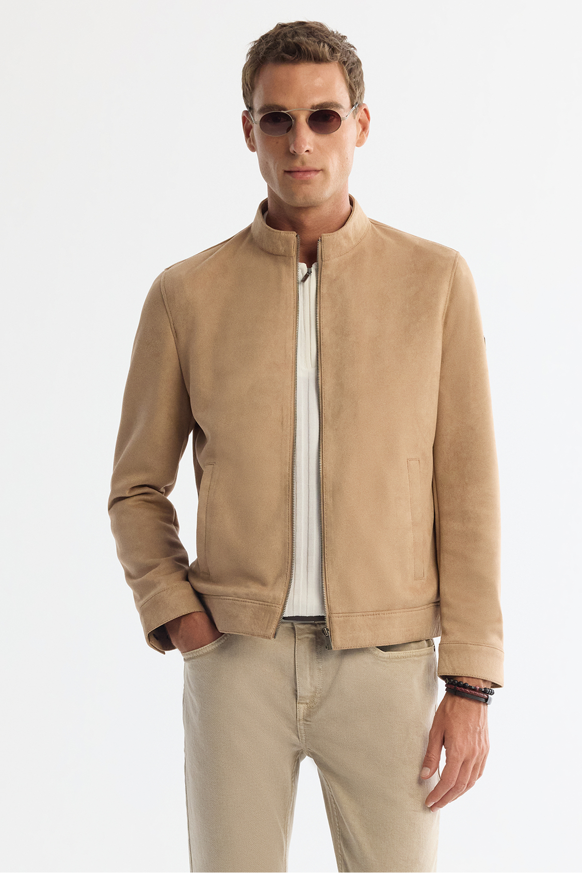 آوا کاپشن راحتی مردانه یقه ایستاده بژ، جیر بافتدار، مناسب فصل، B006002